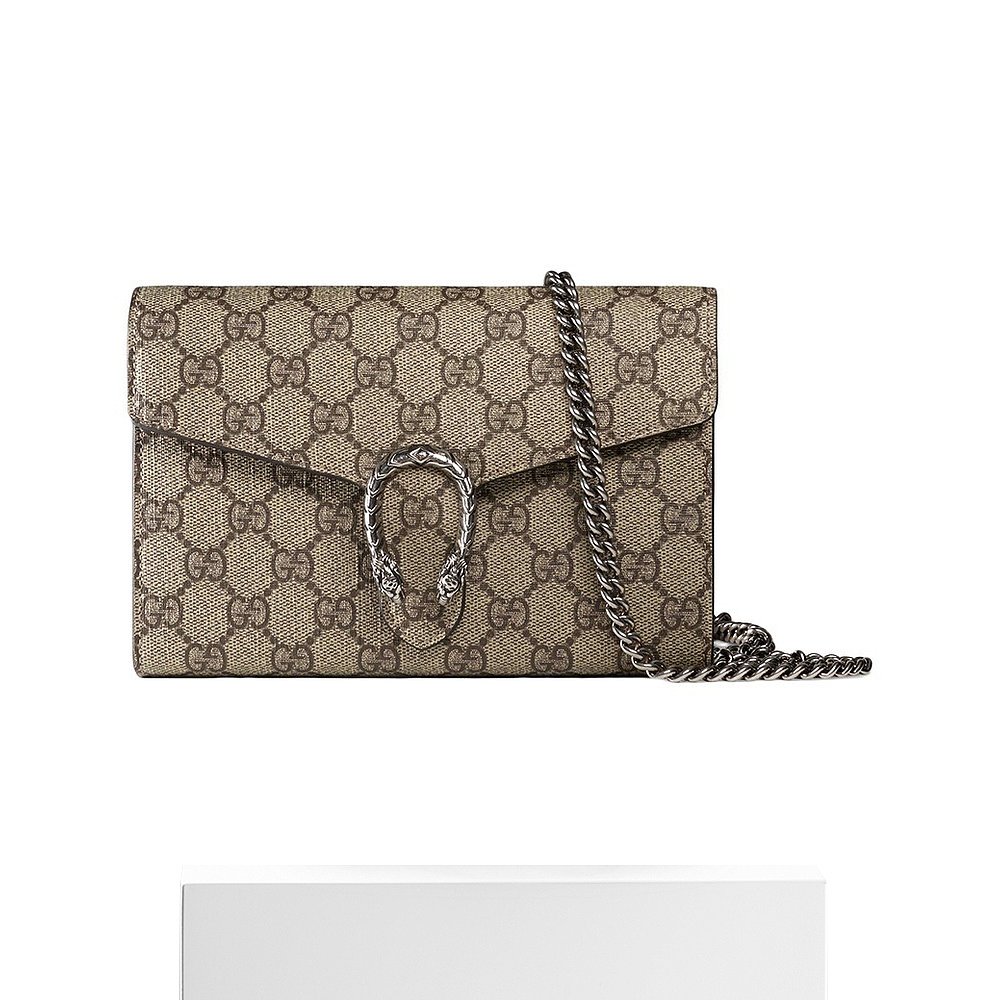 自营Gucci/古驰Dionysus女士帆布棕色马蹄扣链条GG图案单肩包钱包