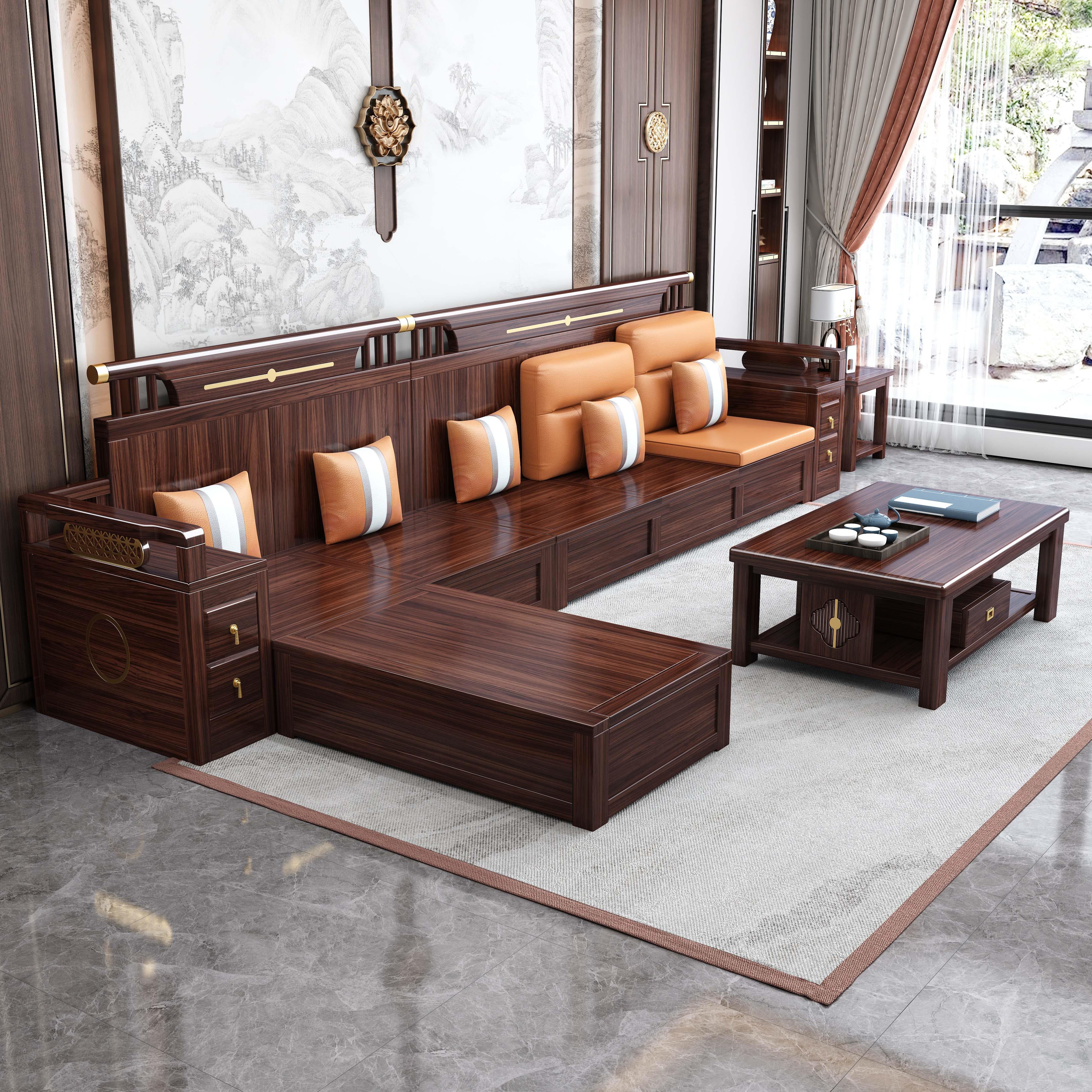 新中式乌金木全实木沙发组合客厅大小户型高箱储物款冬夏两用家具