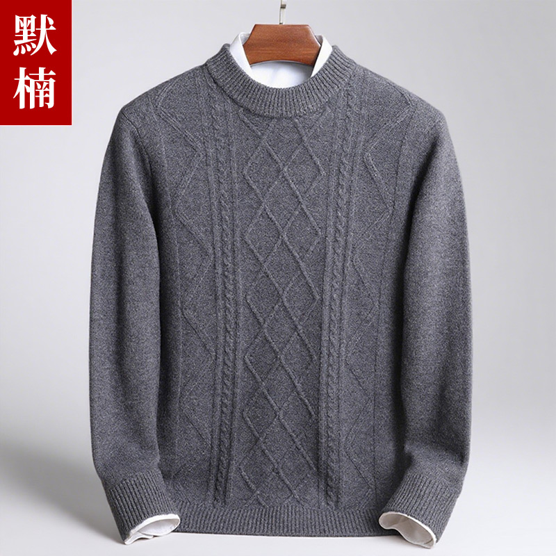 100%绵羊毛针织衫男圆领大码厚款打底衫秋冬新款中青年爸爸装毛衣