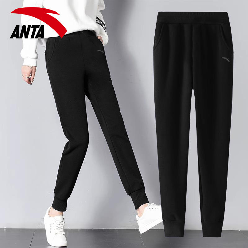 安踏黑色运动裤女裤秋季百搭长裤薄款透气卫裤跑步宽松收口束脚裤
