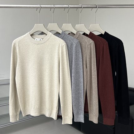 秋冬男装圆领羊毛混纺针织衫简约风格长袖打底衫 亲肤高柔感毛衣
