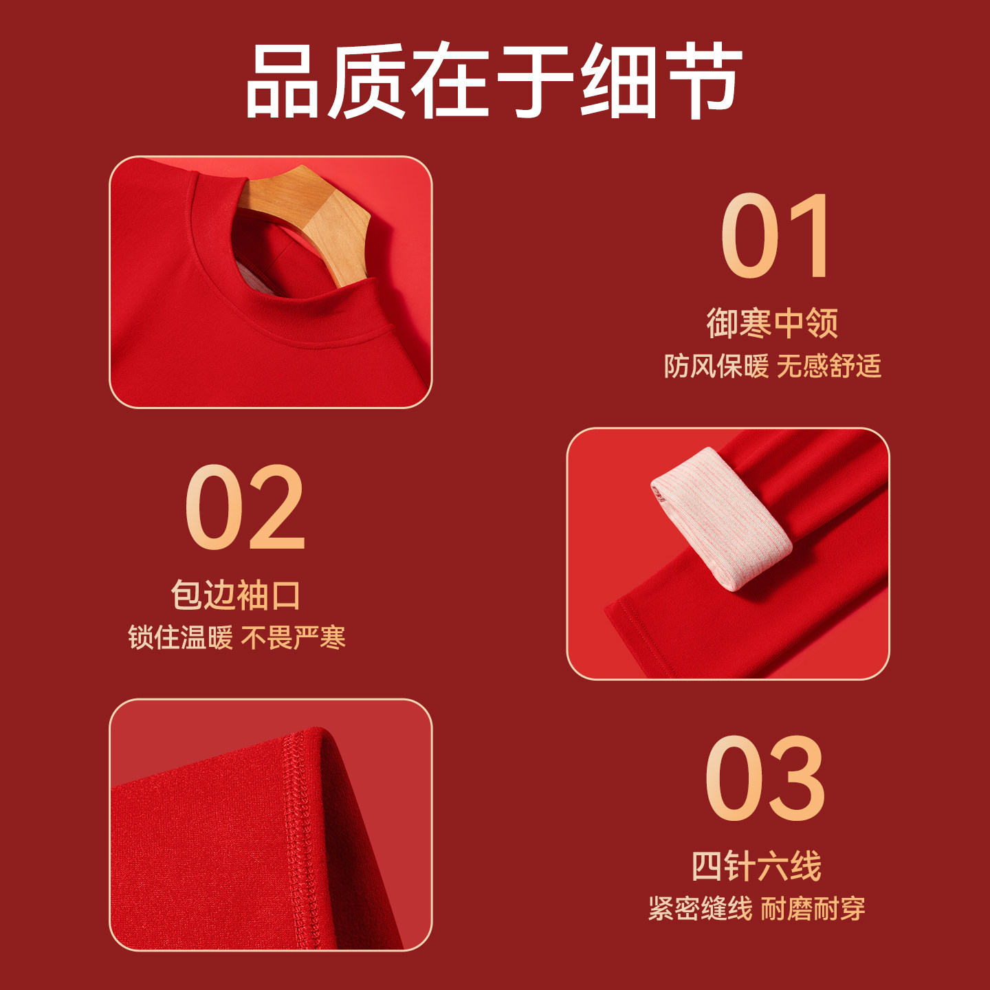 都市丽人本命年大红色中老年爸爸妈妈保暖内衣男女款2026马年套装