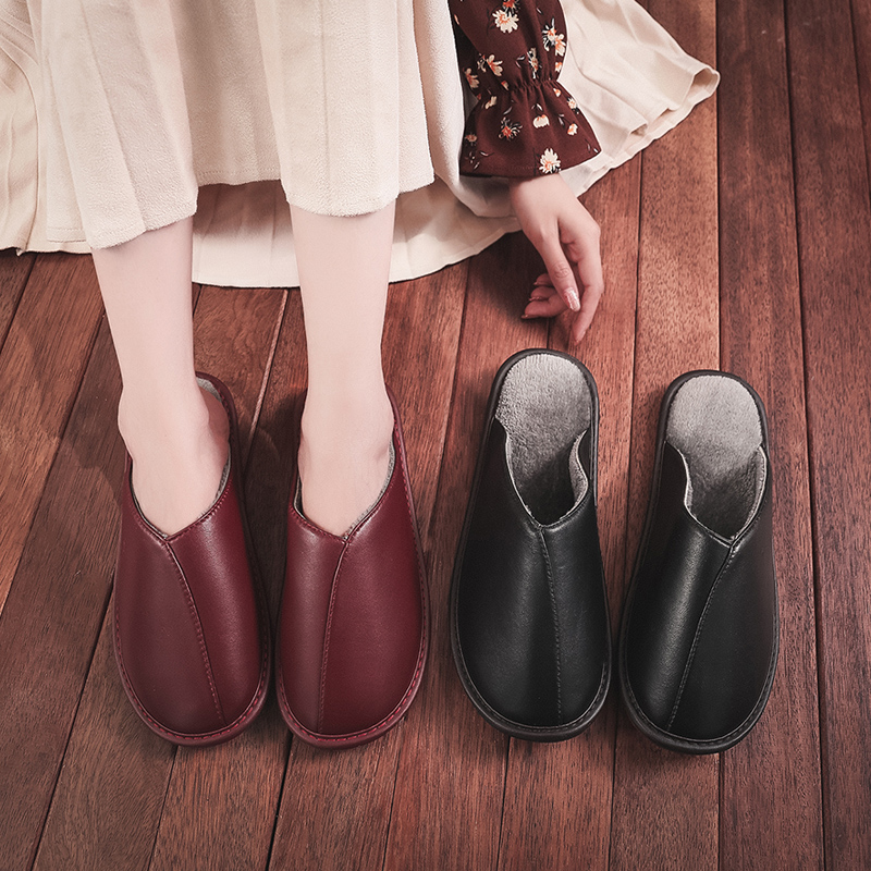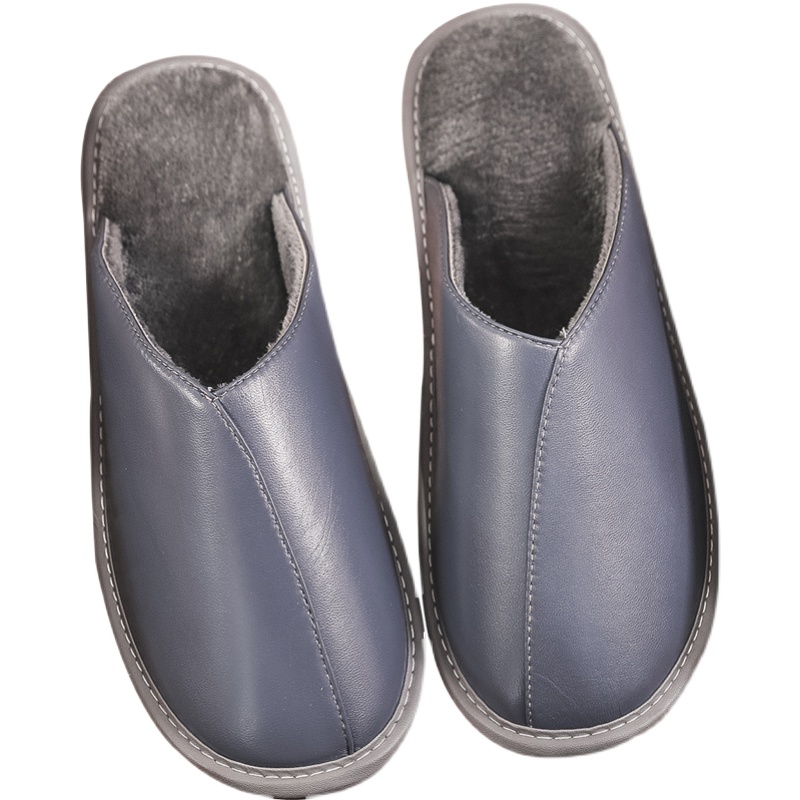 日系静音冬季五星级酒店羊皮保暖棉拖鞋男女居家室内防滑软底真皮