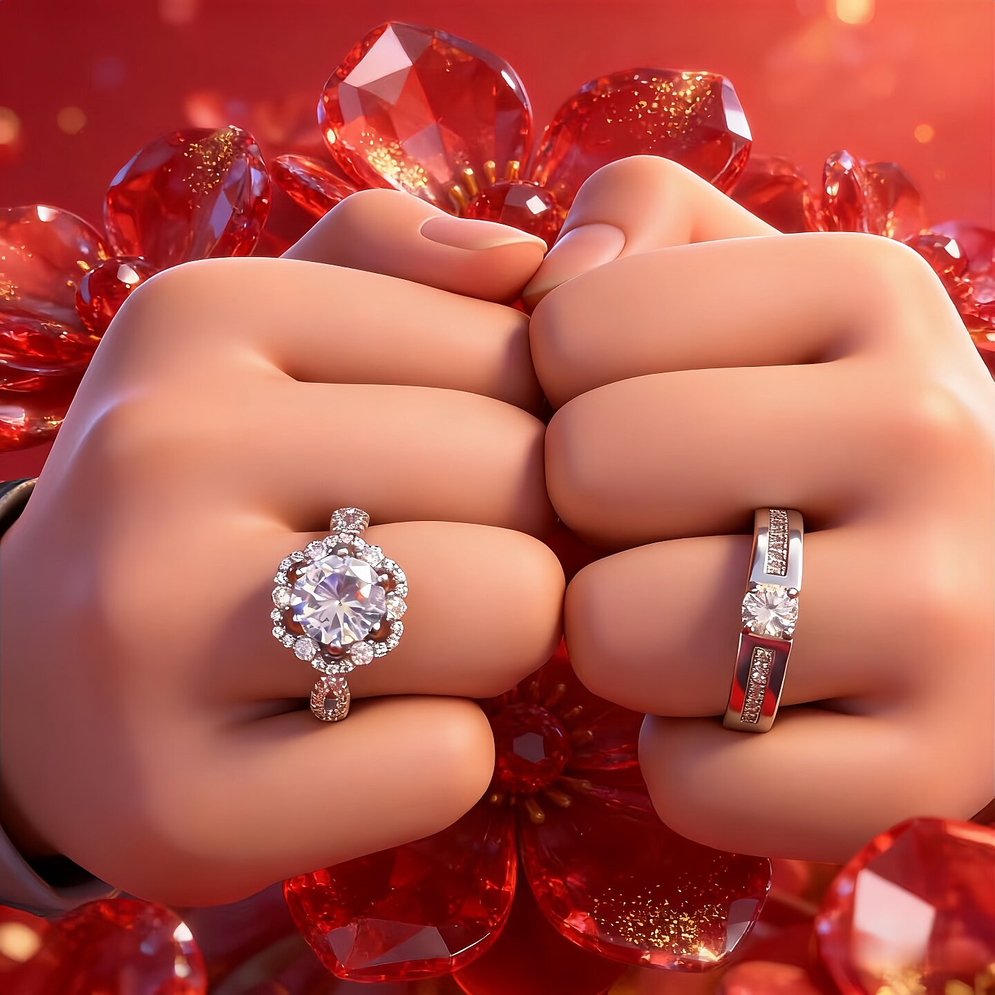 【love相伴】仿真扭臂钻戒对戒活口可调节婚礼仪式结婚戒指求婚女