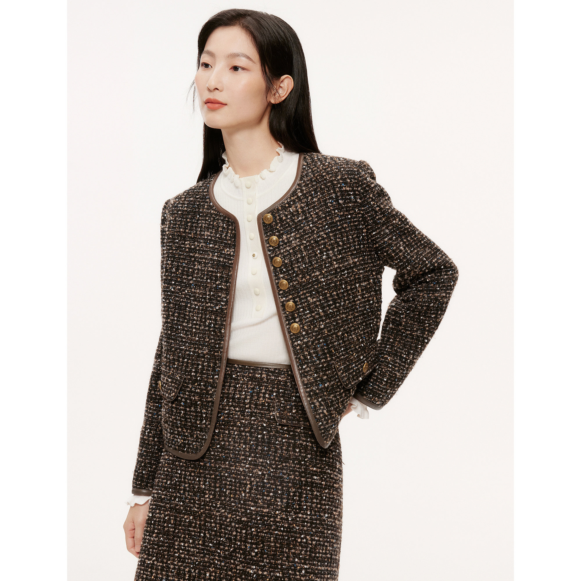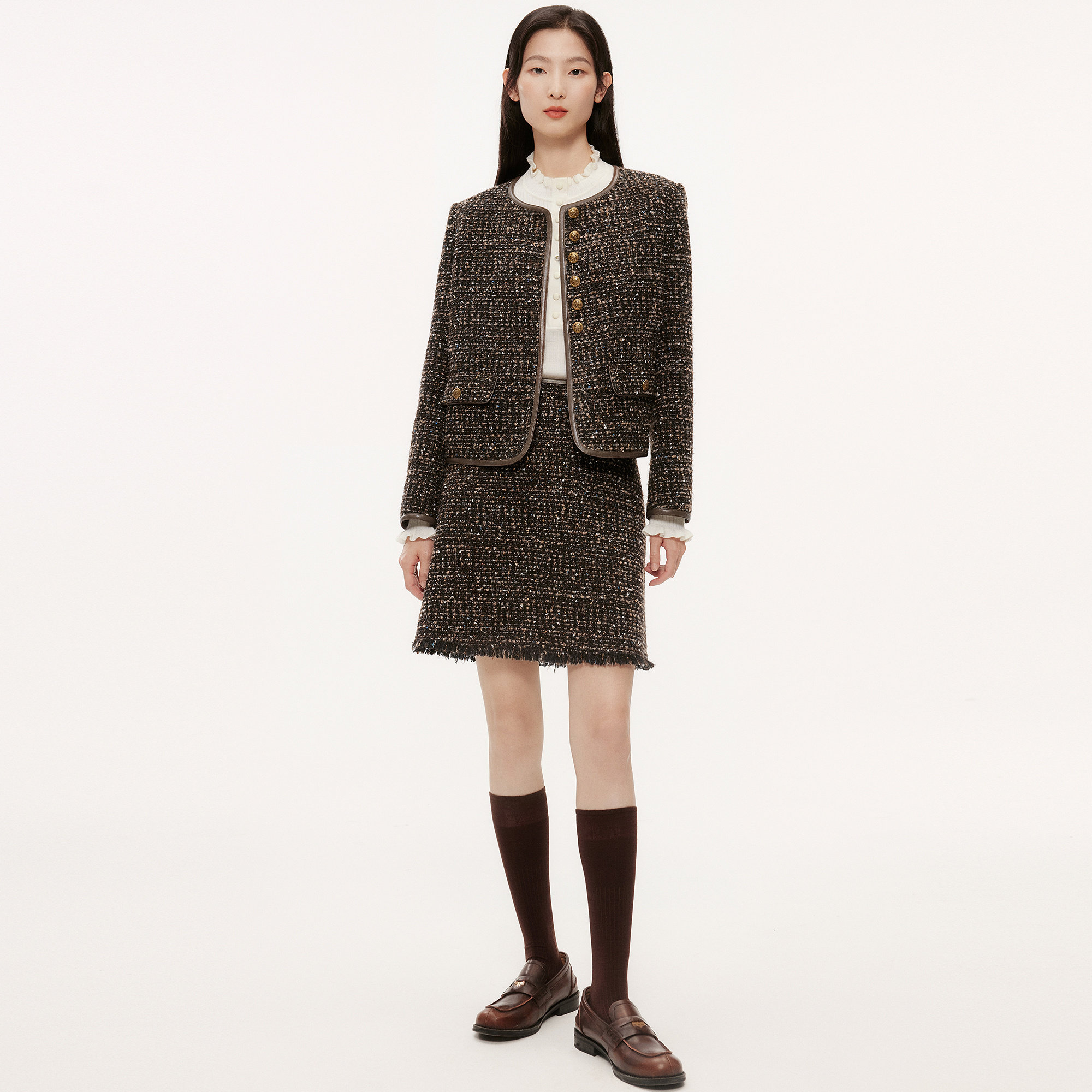 ELSEWHERE珂思【商场同款】时尚香风直筒短款外套女2025秋季新款