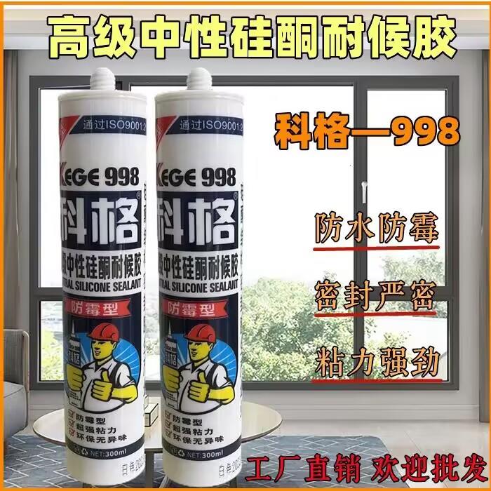 整箱出售科格998玻璃胶中性耐候密封胶家用防水防霉厨卫透明黑色