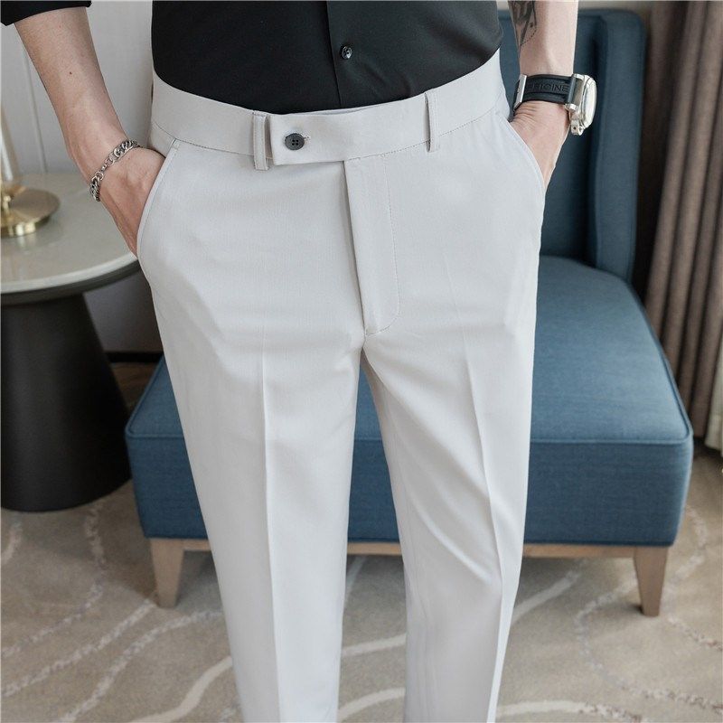 九分西裤男修身小脚夏季薄款高级感垂感潮流商务休闲弹力西装裤子