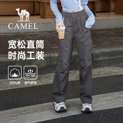 骆驼女装工装裤2025秋季纯棉百搭直筒束脚休闲户外运动长裤子