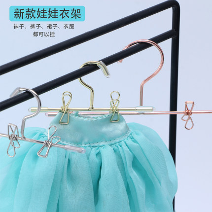 BJD娃用裤子衣架迷你金属芭比棉花娃娃多功能袜子夹子微景观家具