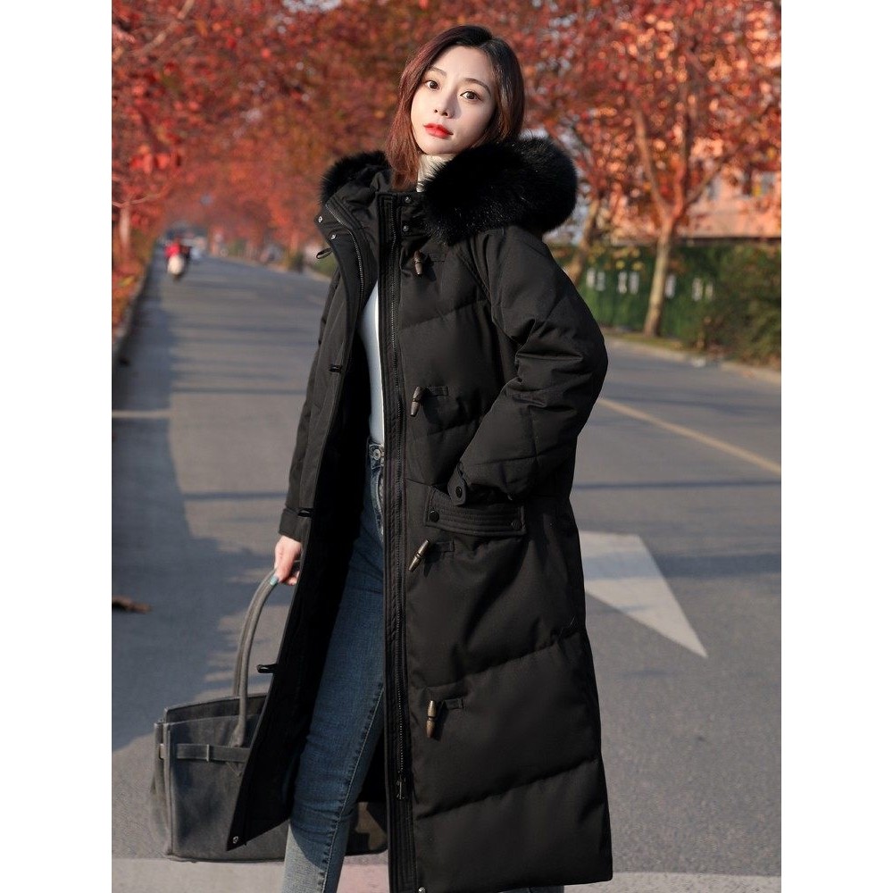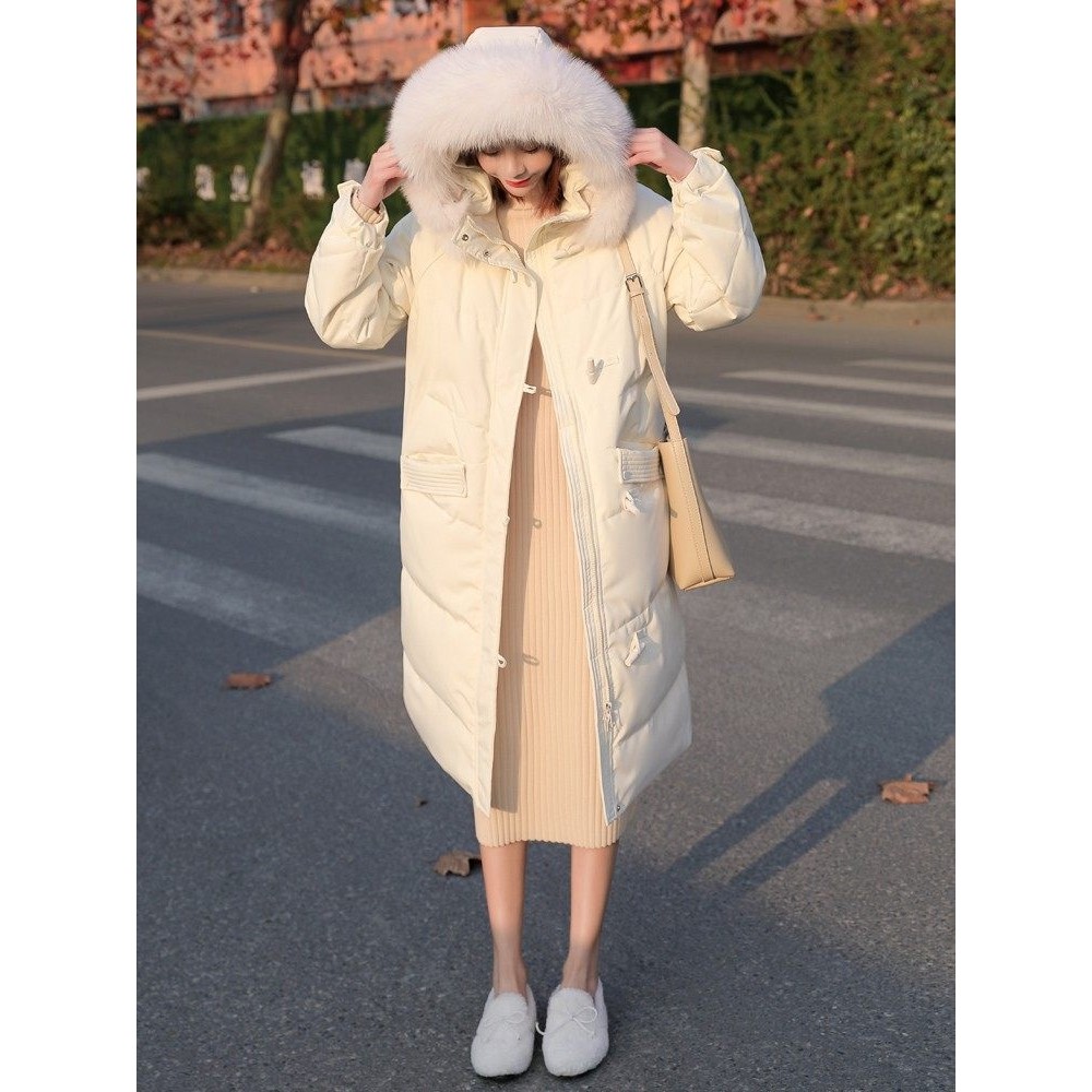 凯乐石薄荷2025新款反季清仓羽绒服女白鸭绒大毛领韩版中长款外套