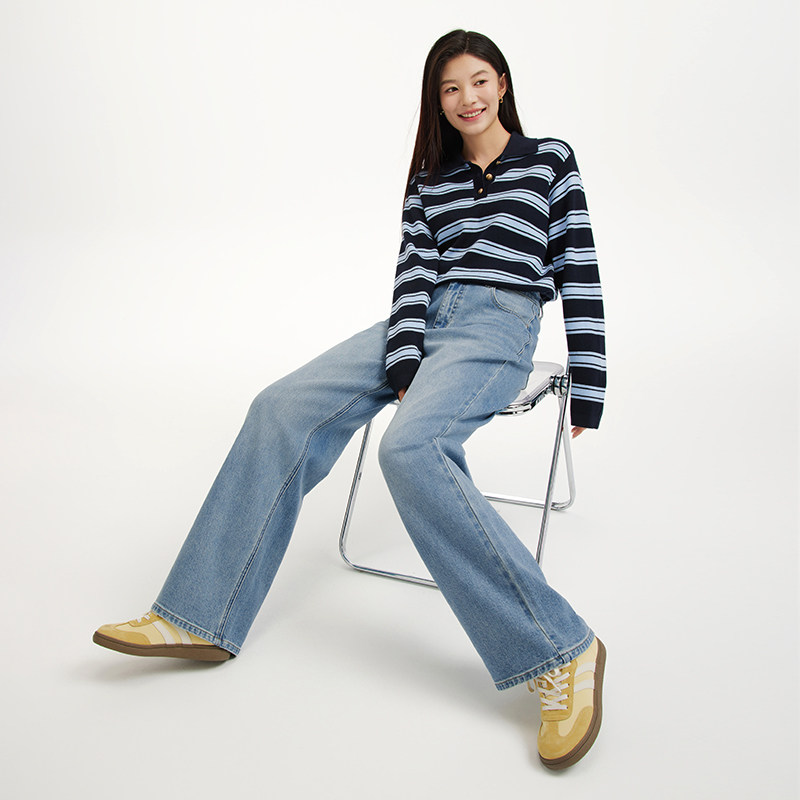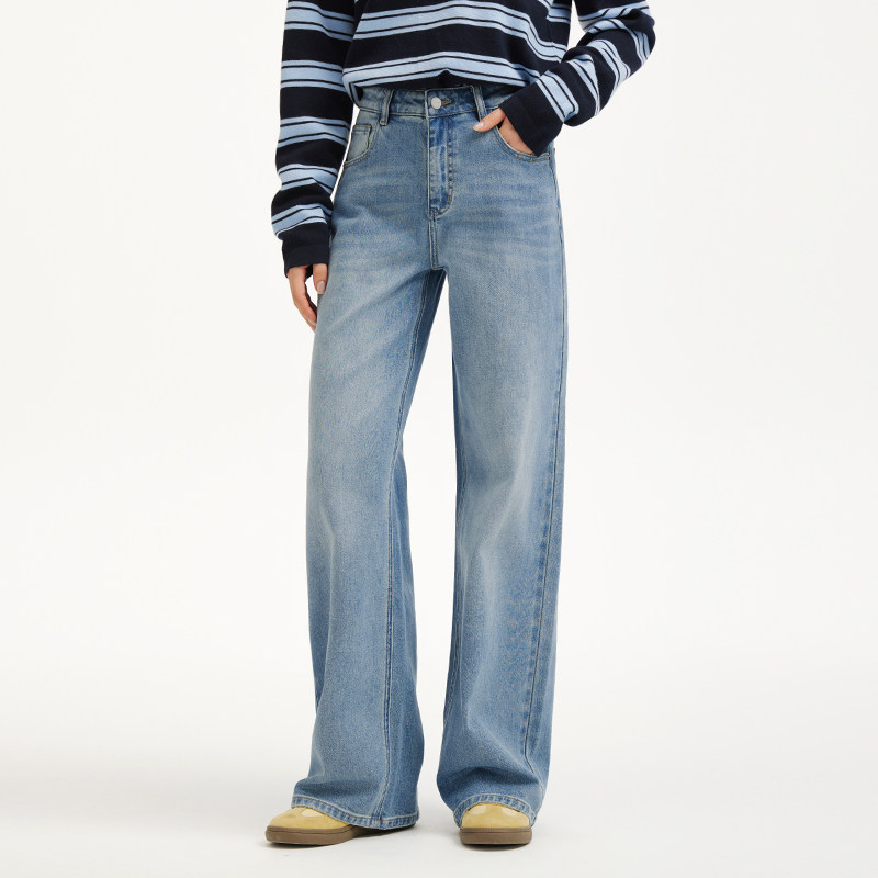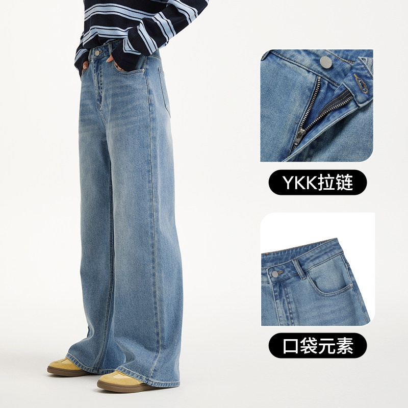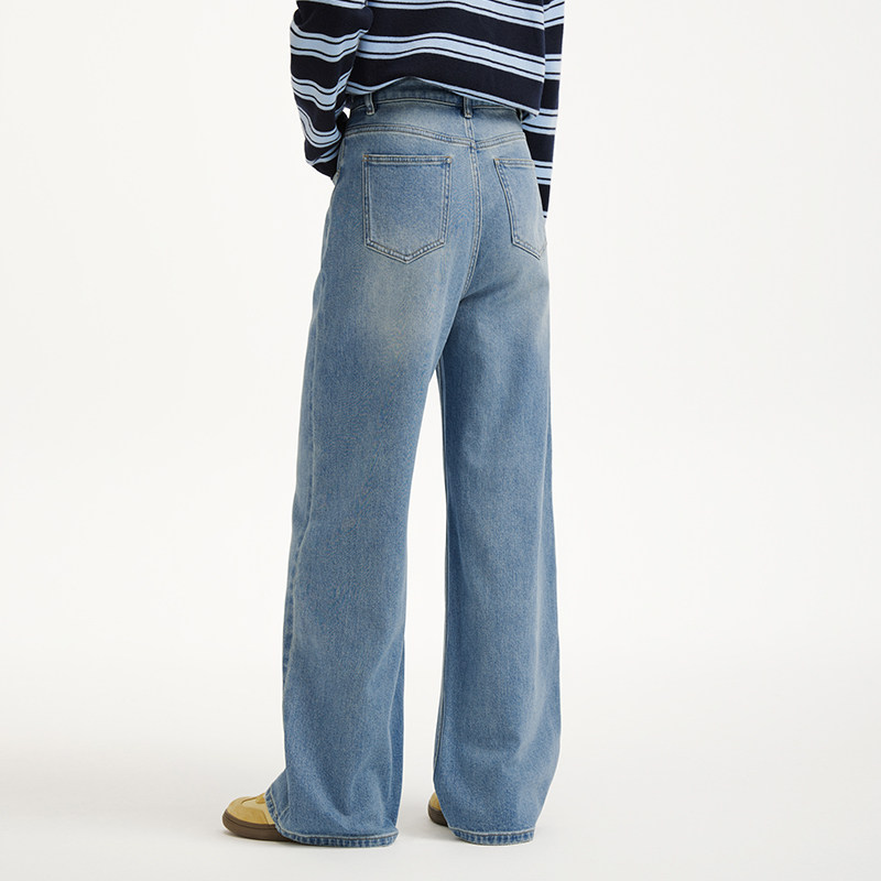 热风女士牛仔裤直筒宽松2026年春季新款休闲宽松直筒浅色复古长裤