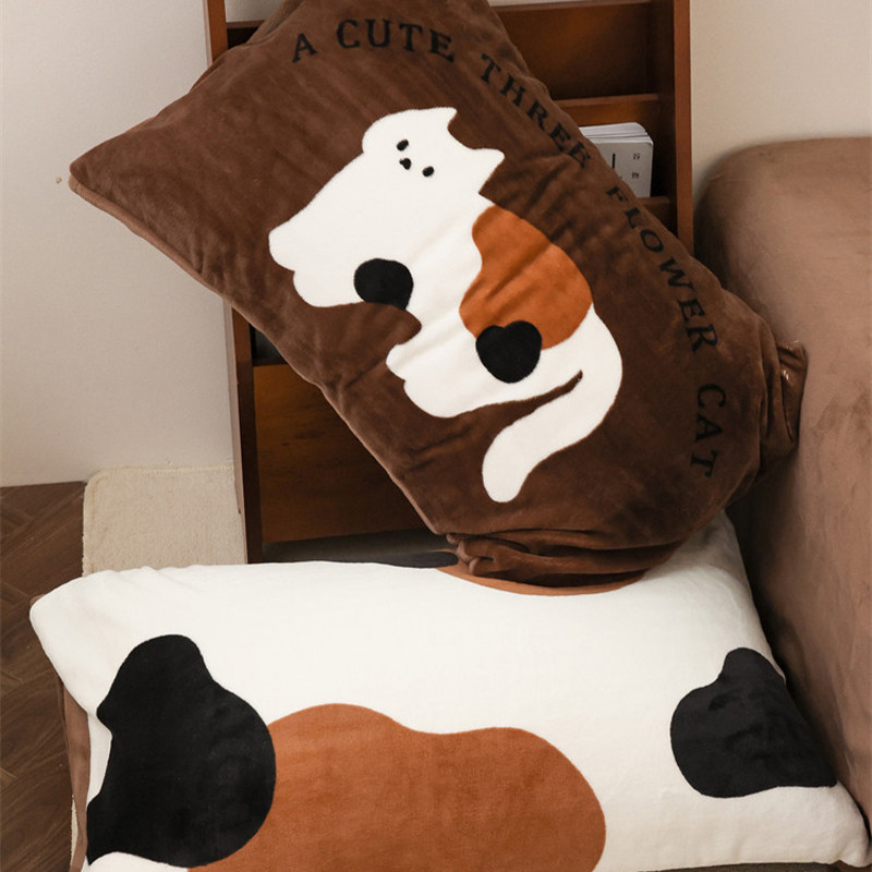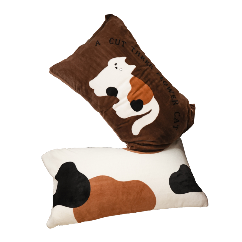 三花喵喵 萌系原创可爱猫咪冬季奶油绒枕套单只毛绒枕芯罩可定制