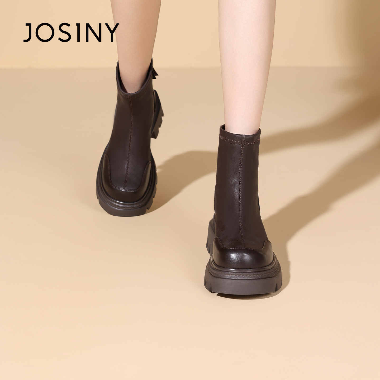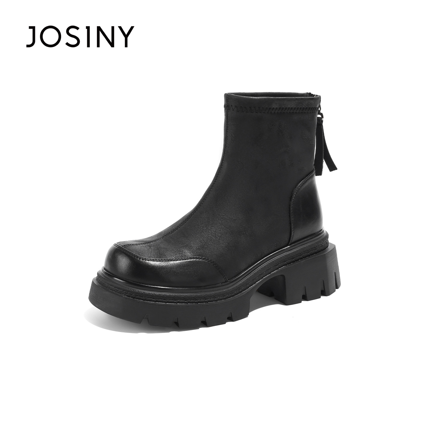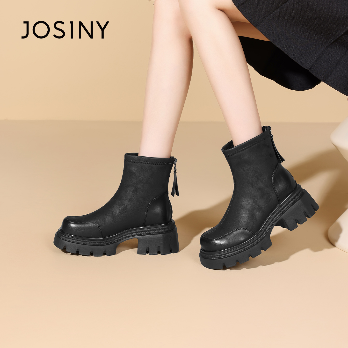 卓诗尼2025秋冬新款后拉链短筒靴时尚舒适切尔西靴潮流粗跟时装靴