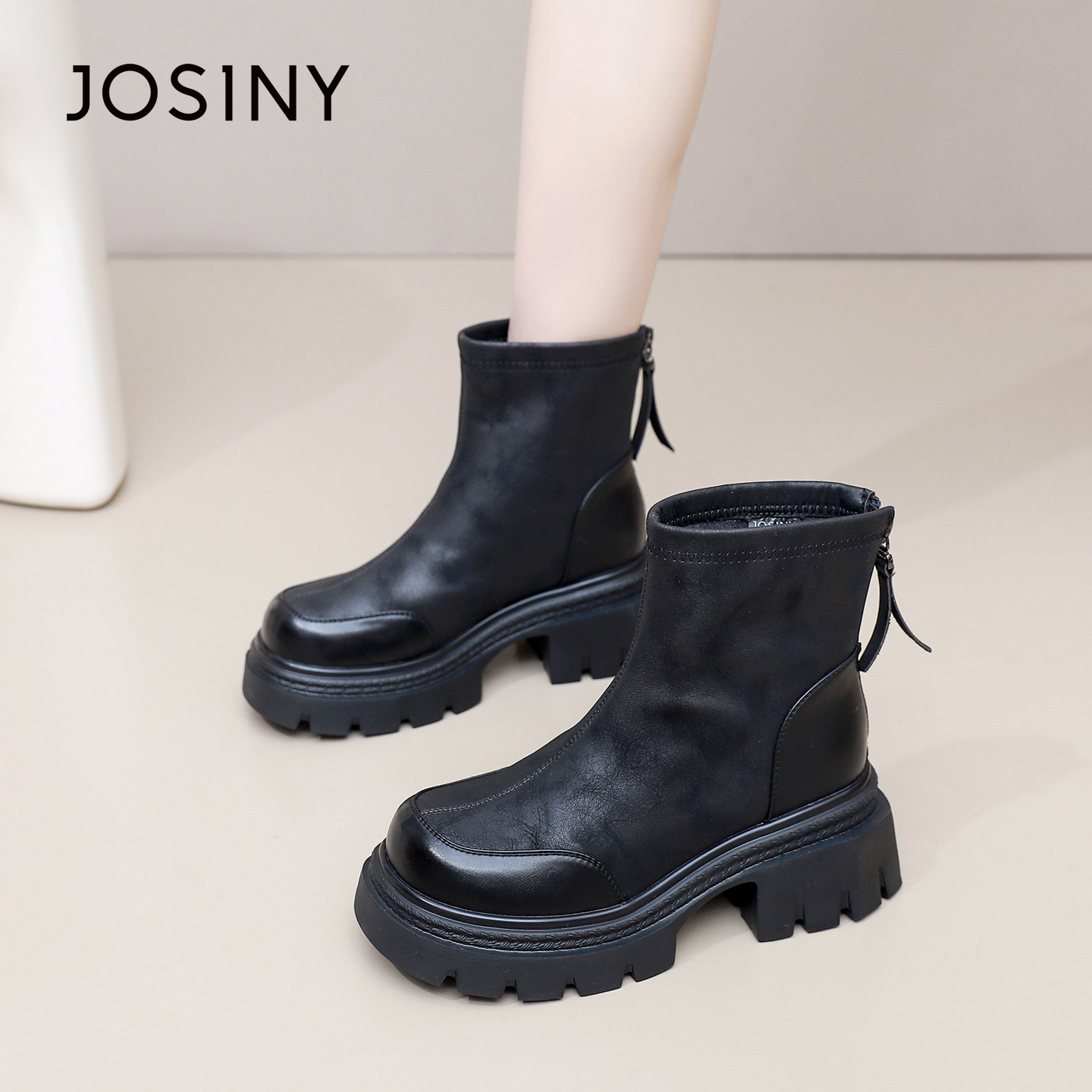 卓诗尼2025秋冬新款厚底短靴女瘦瘦靴女鞋子马丁靴女黑色切尔西靴