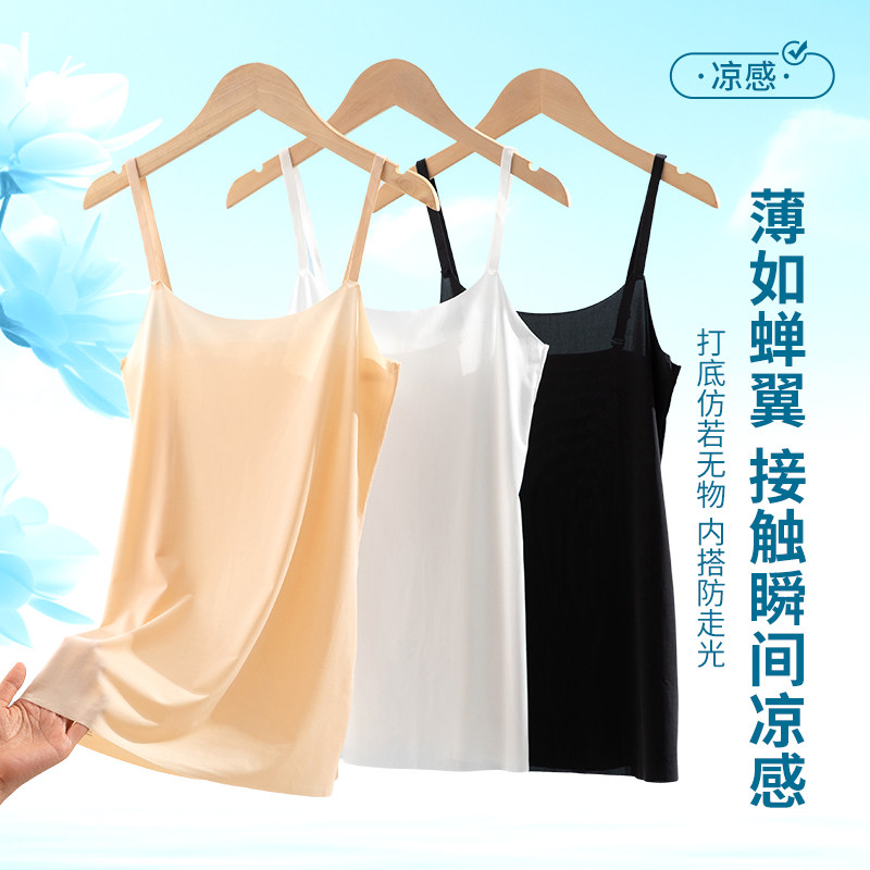 细肩带冰丝吊带背心女夏无痕打底美背小背心内搭防走光肉色超薄款