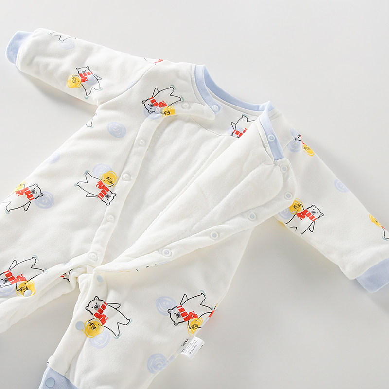 翘脚鸭婴儿衣服120g夹棉加厚新生儿连体衣秋冬季宝宝外出棉服纯棉