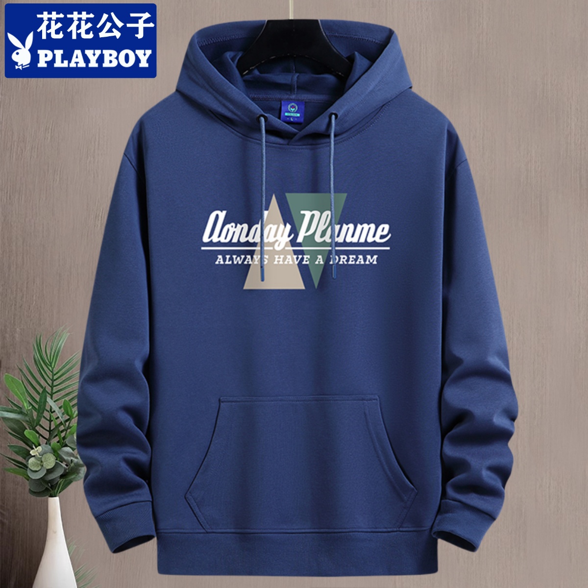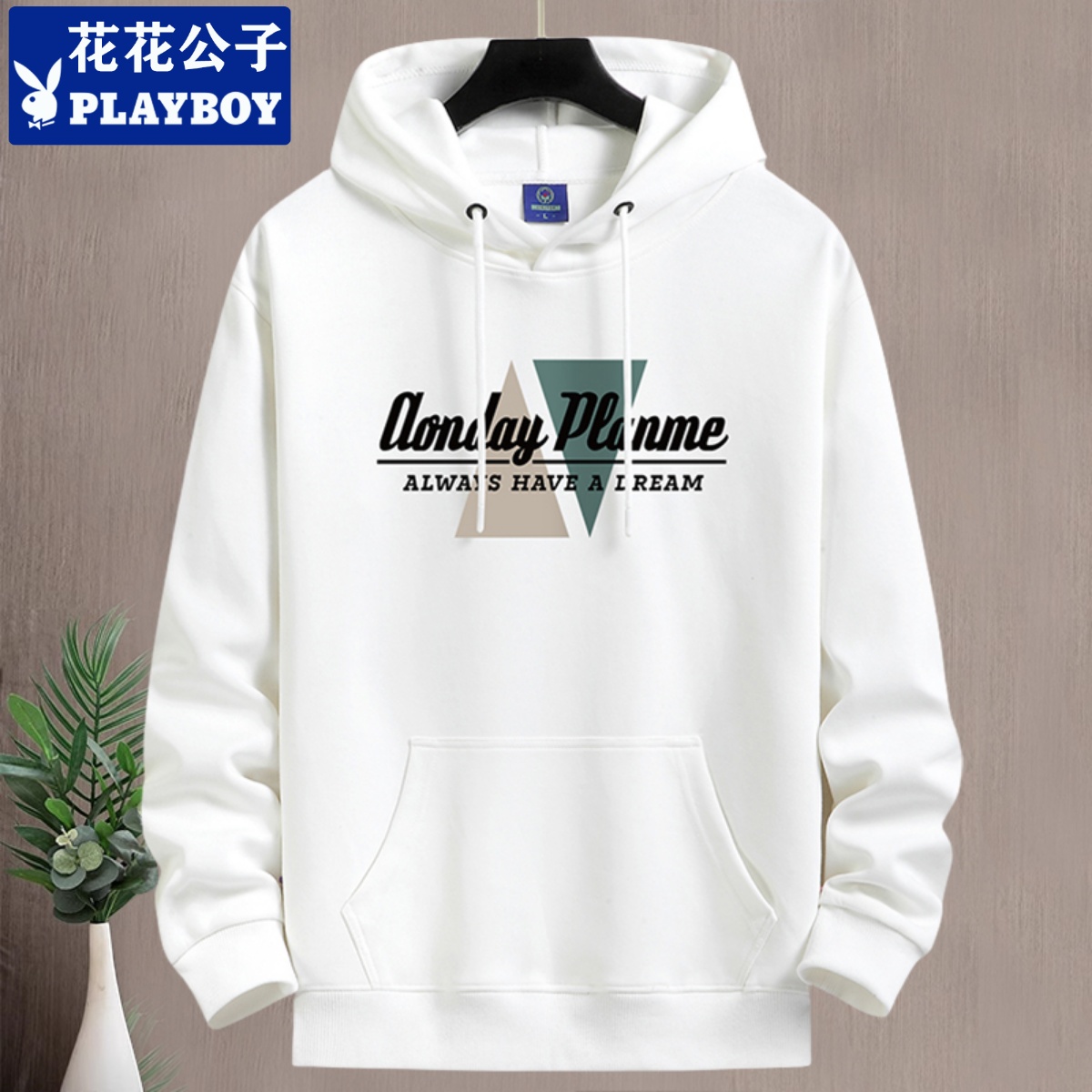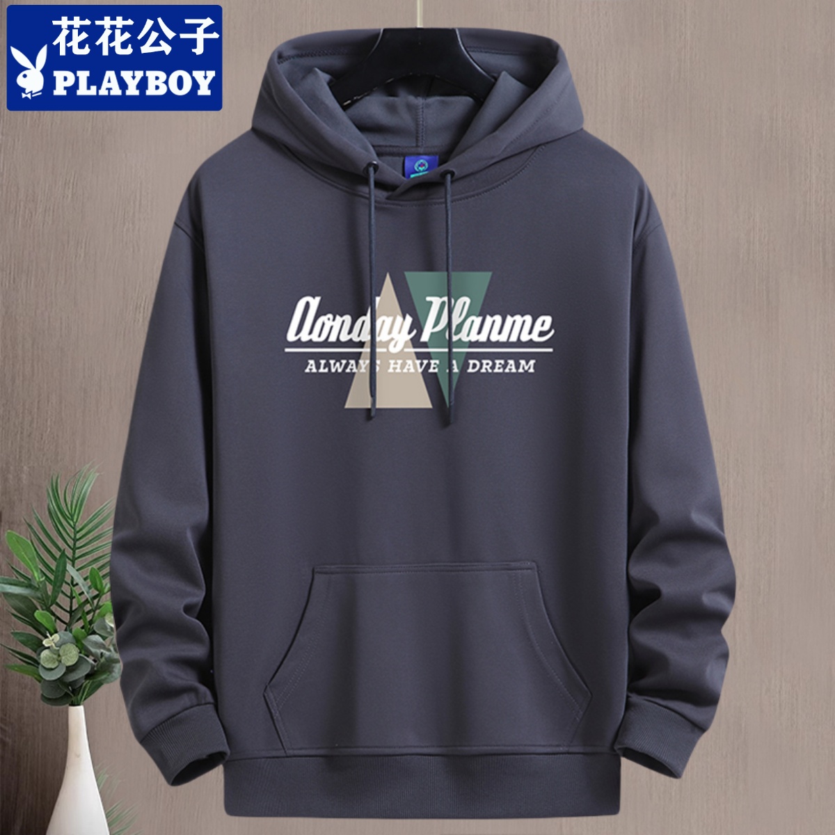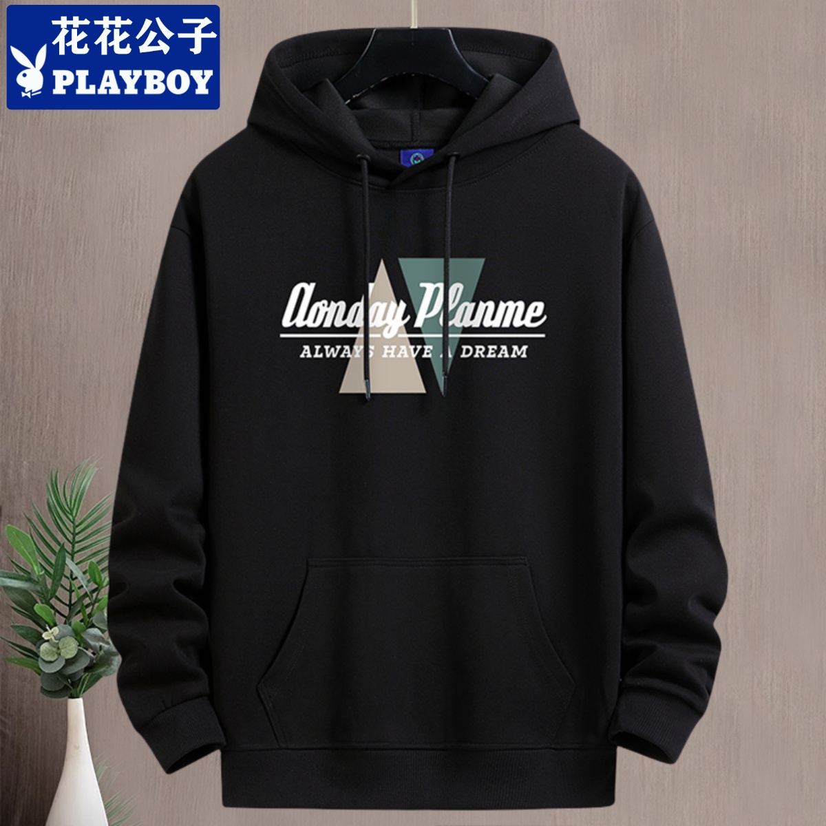 花花公子秋冬加绒卫衣男连帽青年潮牌宽松大码百搭棉帽衫上衣外套