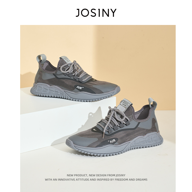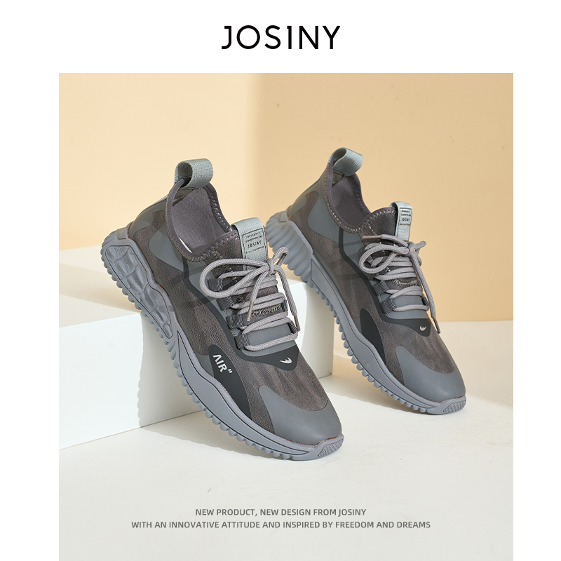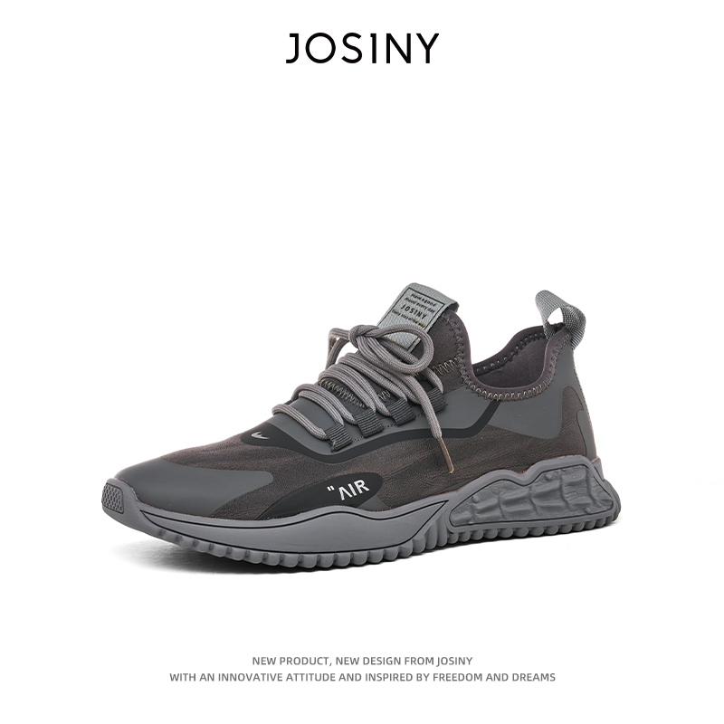 卓诗尼春秋季新款男鞋子男士单鞋子圆头系带平跟深口低帮运动休闲