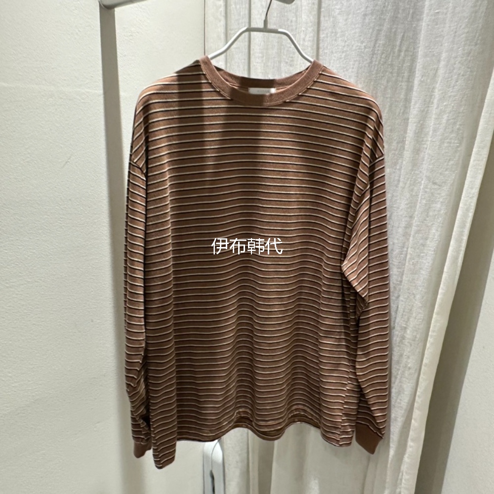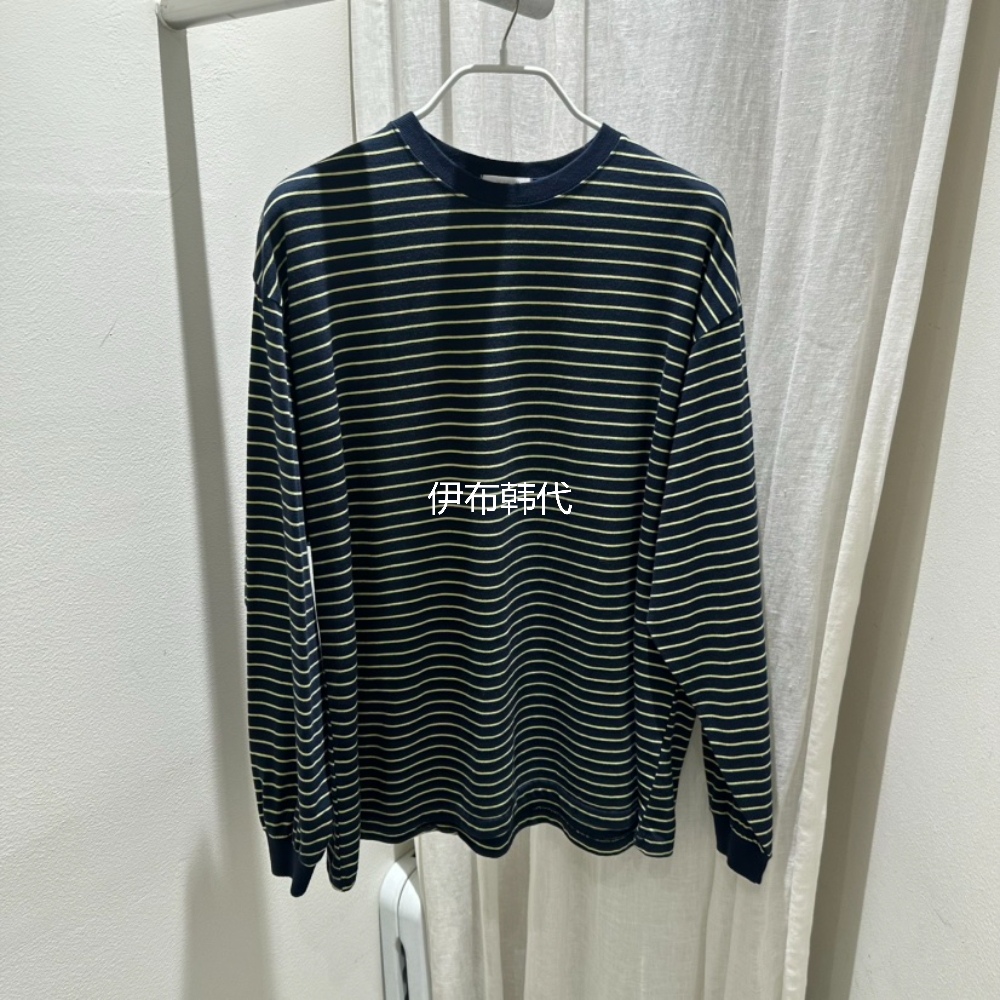MARAN韩国东大门正品代购25冬款 圆领棉质休闲条纹宽松长袖T恤