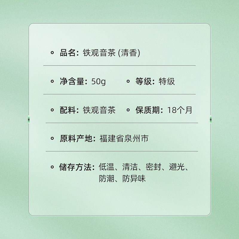 清香铁观音乌龙茶叶礼盒茶冷泡茶自己喝单罐50g