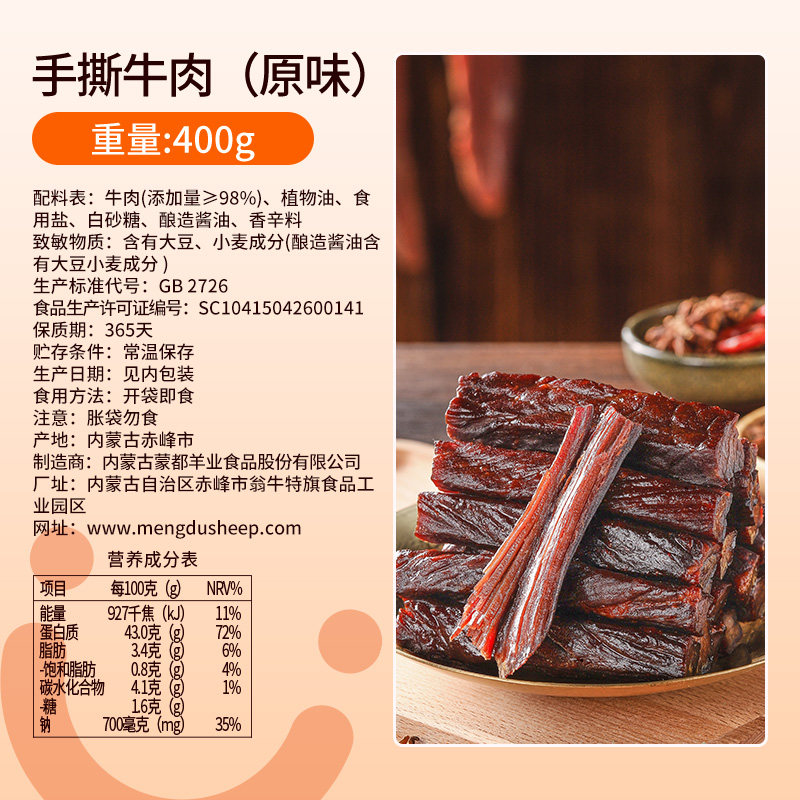 蒙都手撕风干牛肉干内蒙古特产