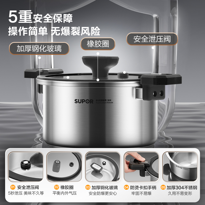 苏泊尔微压力锅家用2025新款加高蒸炖煮新型燃气电磁炉双耳微压锅