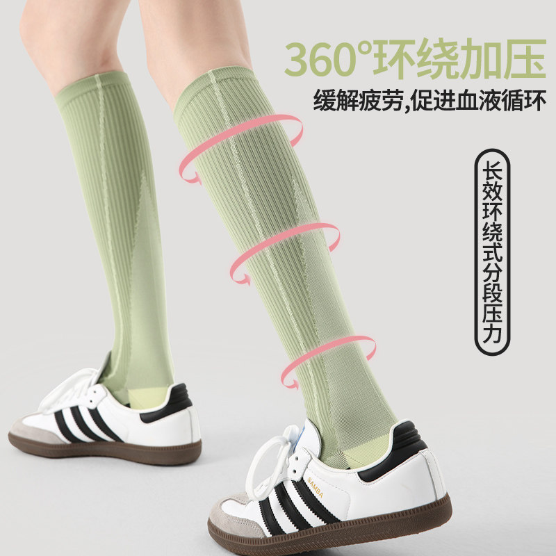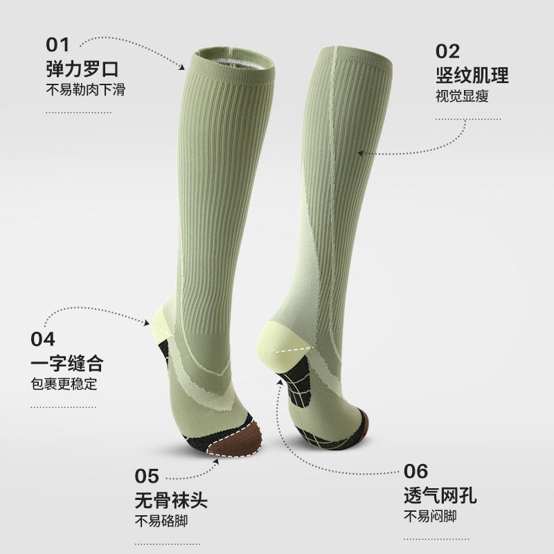 小腿压力袜专业跑步运动袜女跳绳骑行登山徒步瑜伽瘦腿加压长筒袜