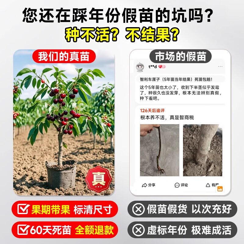 正宗车厘子树苗大樱桃树苗果树果苗嫁接矮化盆栽水果苗南方北种植