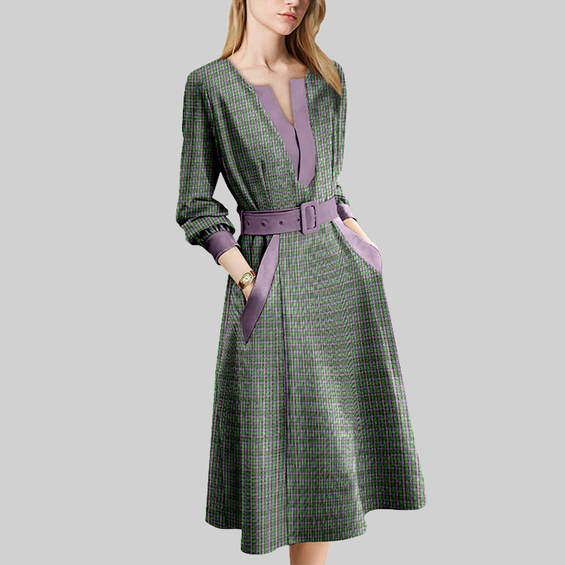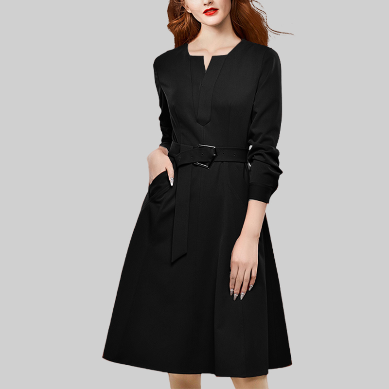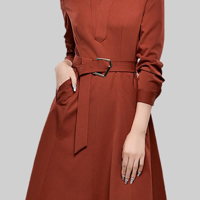 设计感通勤v领连衣裙女2025年秋冬新款橘红色收腰气质时尚中长裙
