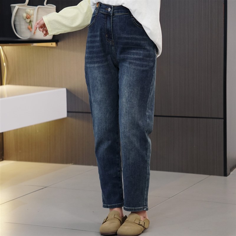 大码女装秋季高腰显瘦哈伦牛仔裤 100-200斤胖mm百搭弹力九分女裤
