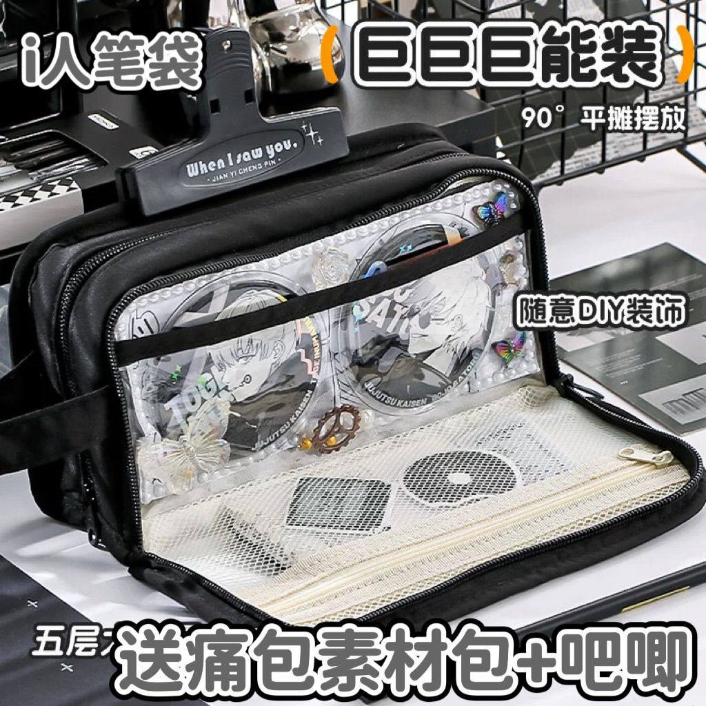 社恐隐藏痛包笔袋i人痛笔袋透明可放吧唧黑色耐脏大容量初中女生二次元小卡谷子收纳包铅笔文具盒ins风高颜值