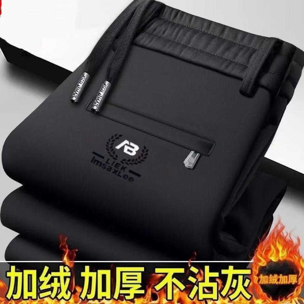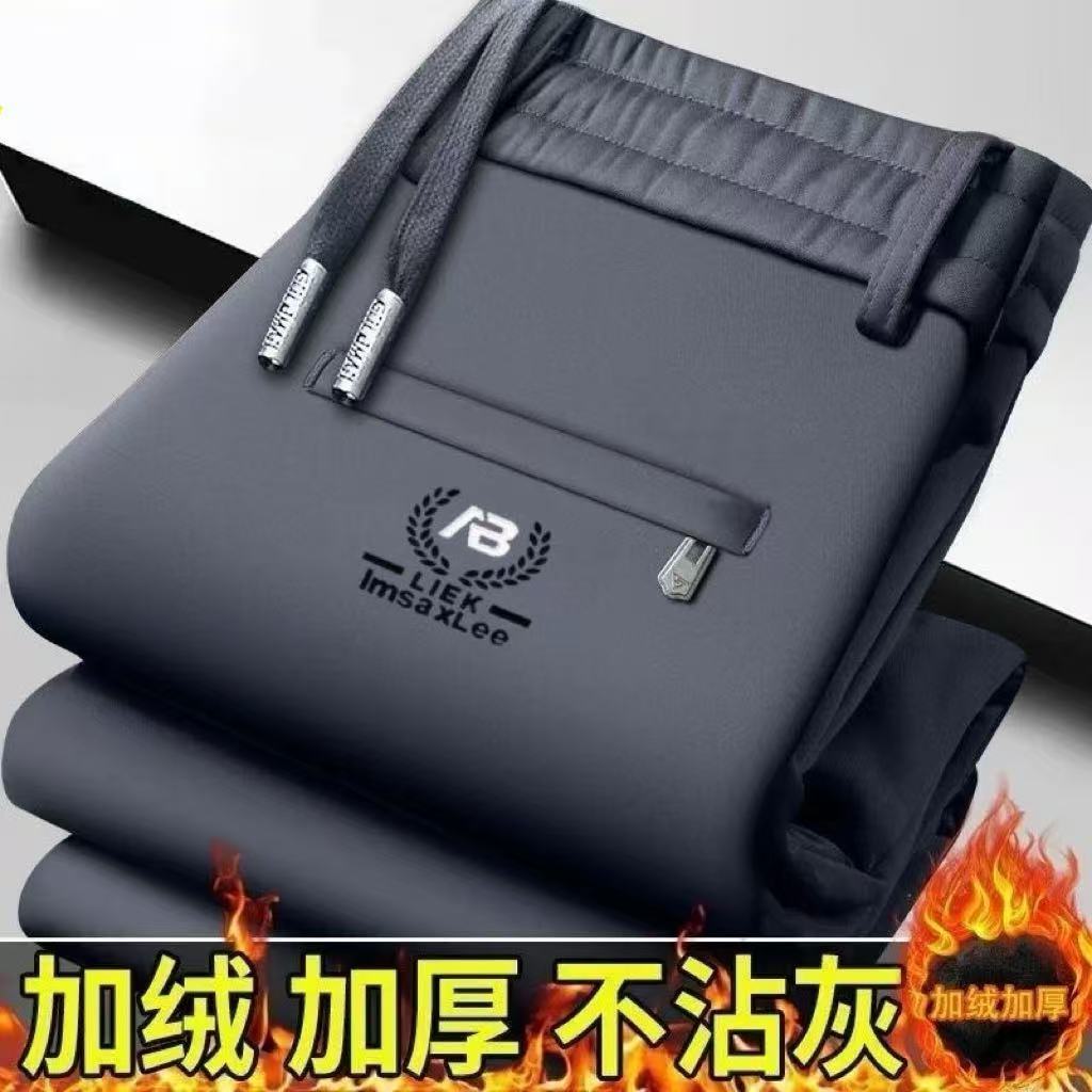 男士休闲裤弹力秋冬季加绒加厚宽松松紧腰直筒中年爸爸装运动裤子