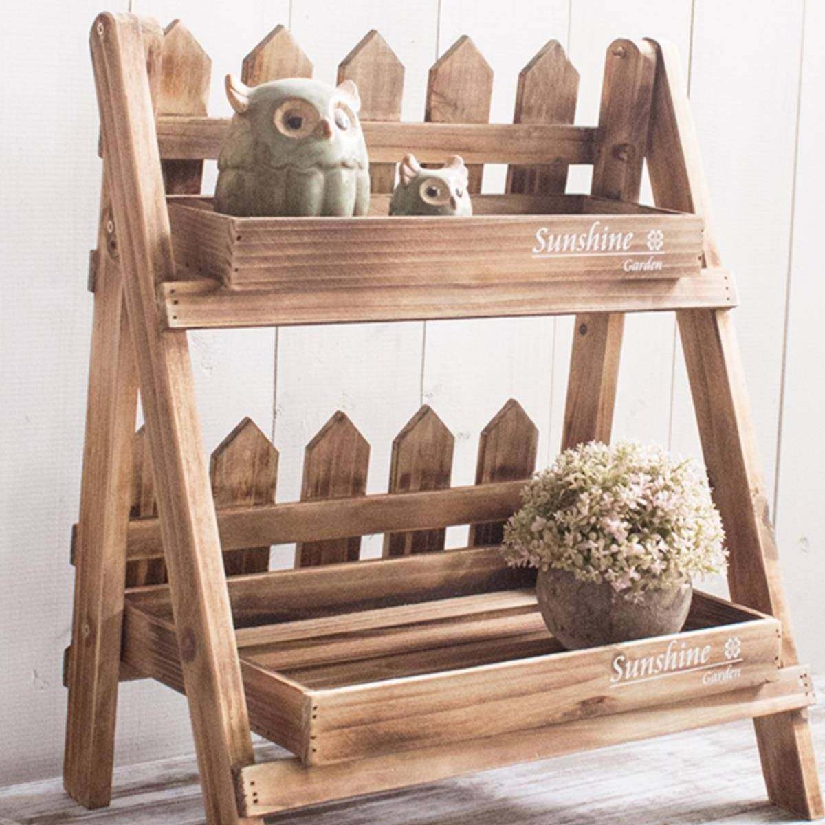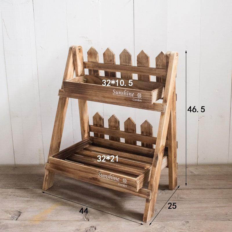 桌面多实木2层小花架花园tb-66328肉盆架窗阳飘台植物置物架外户