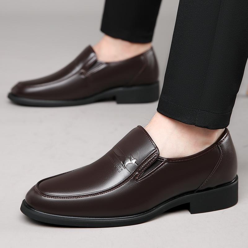 欧伦啄木鸟皮鞋男真皮透气商务正装男鞋内增高加绒中老年爸爸棉鞋