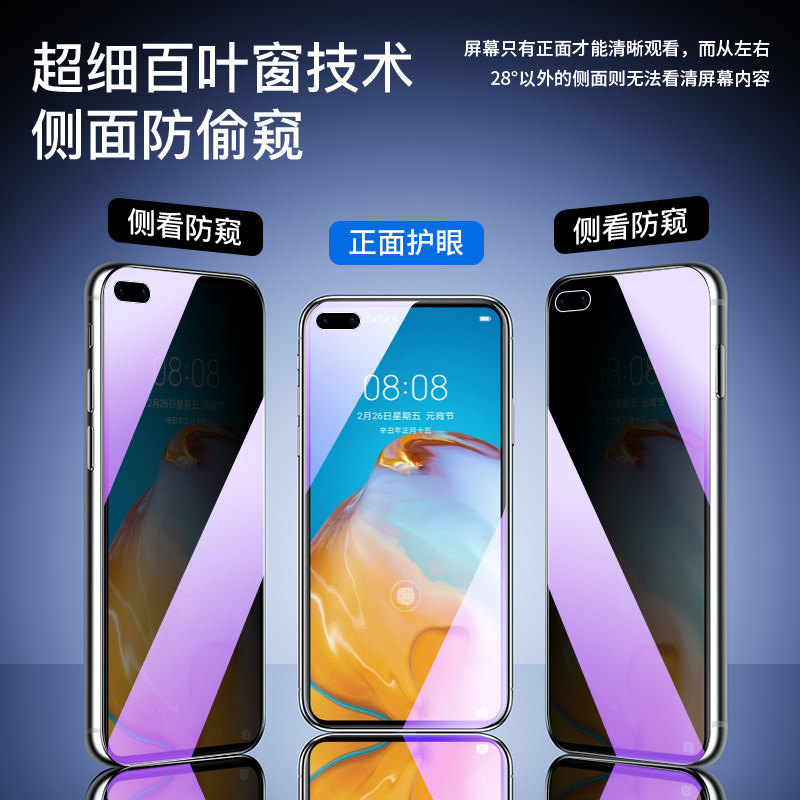 适用华为p40防窥膜全屏全覆盖钢化膜p40高清玻璃屏保Huawei手机贴膜防指纹蓝光防窥屏ANA-AN00防偷窥保护膜5g