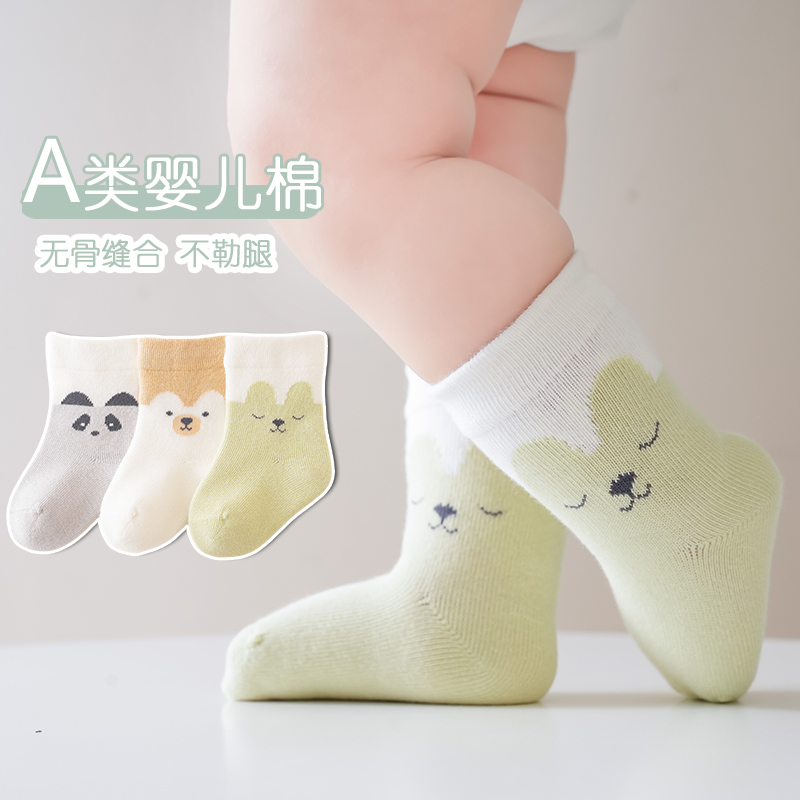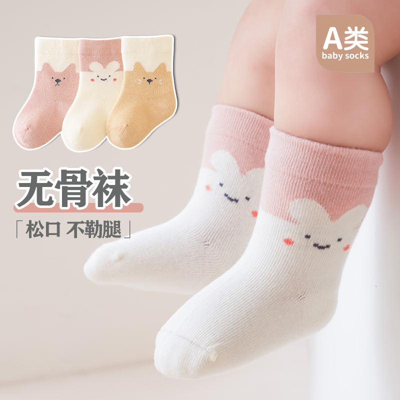 婴儿袜子春秋薄款棉袜透气秋冬新生儿无骨松口男女卡通宝宝中筒袜