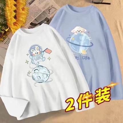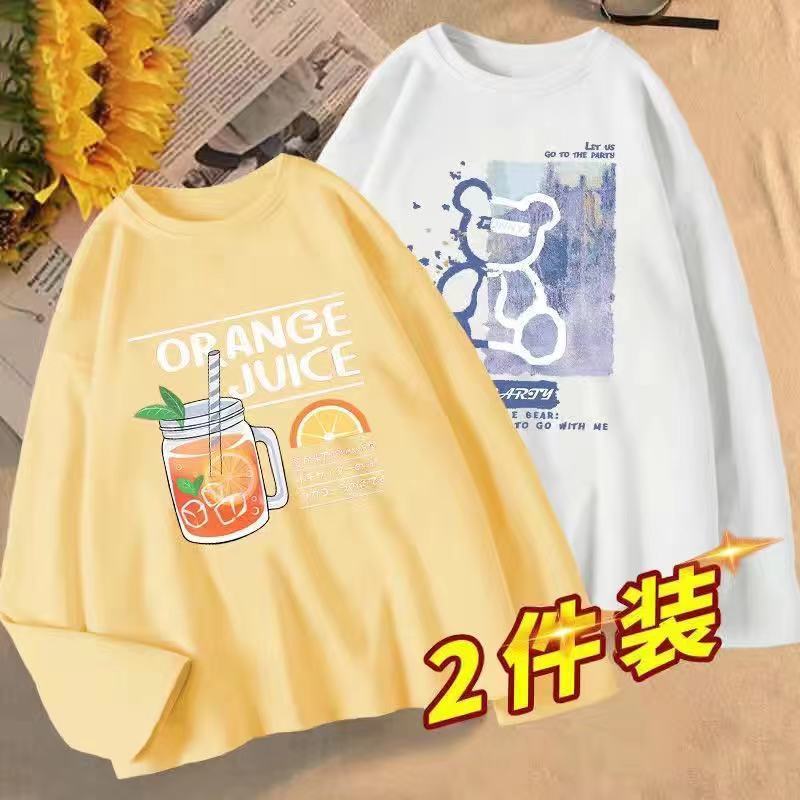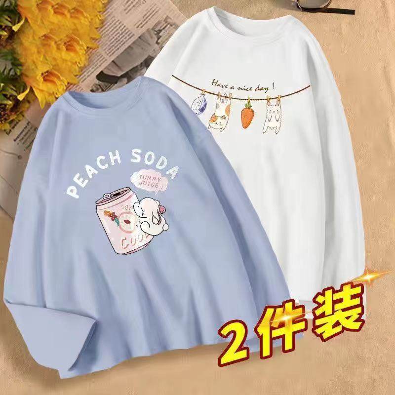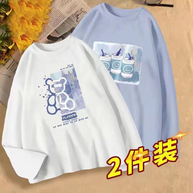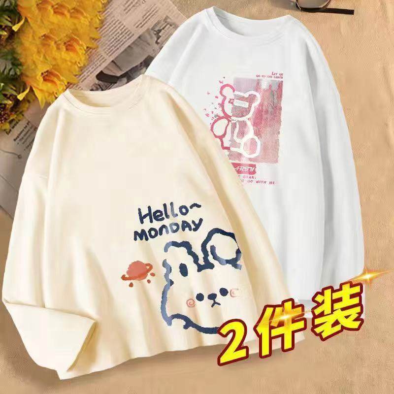 长袖T恤女2023春秋新款字母韩版学生宽松百搭上衣ins潮秋衣外穿