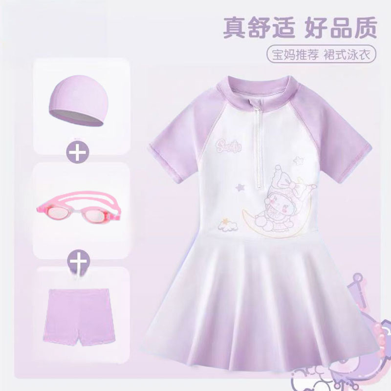 儿童卡通洋气渐变色游泳装女童新款海边沙滩温泉度假泳衣裙套装