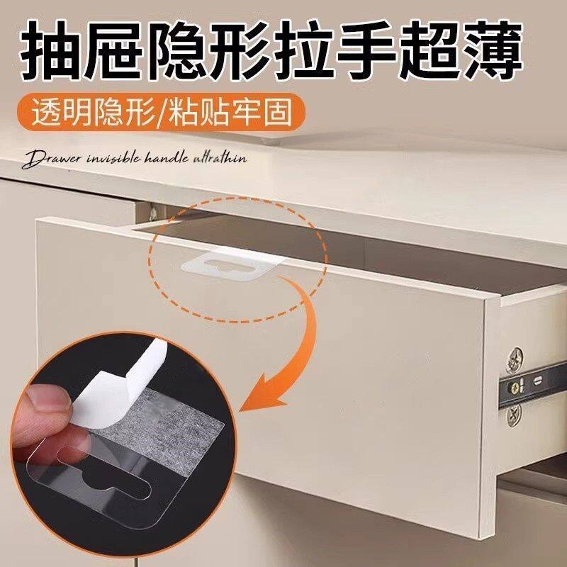 抽屉隐形拉手超薄隐形柜门衣柜抽屉拉手免打孔免钉强力粘贴把手贴