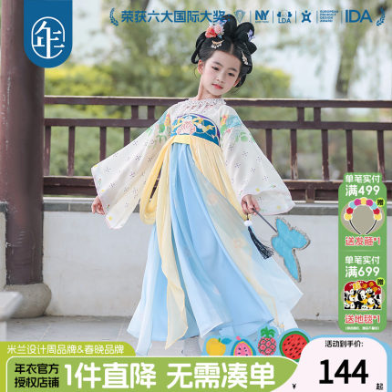 年衣童装女童汉服春秋款超仙连衣裙古装唐装儿童中秋表演演出服