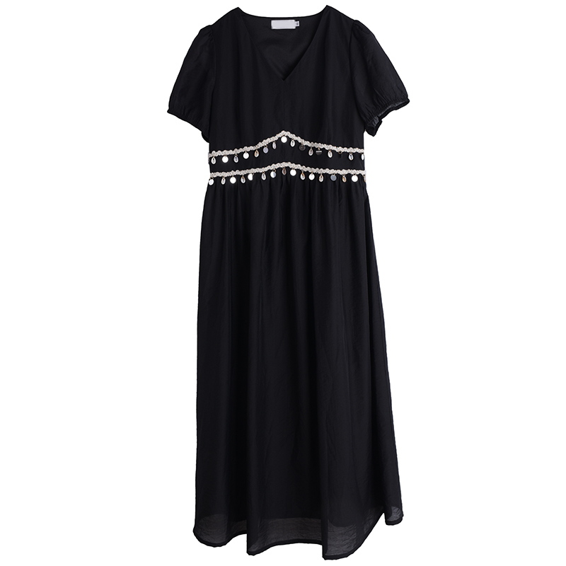 纯色收腰显瘦民族风亮片连衣裙