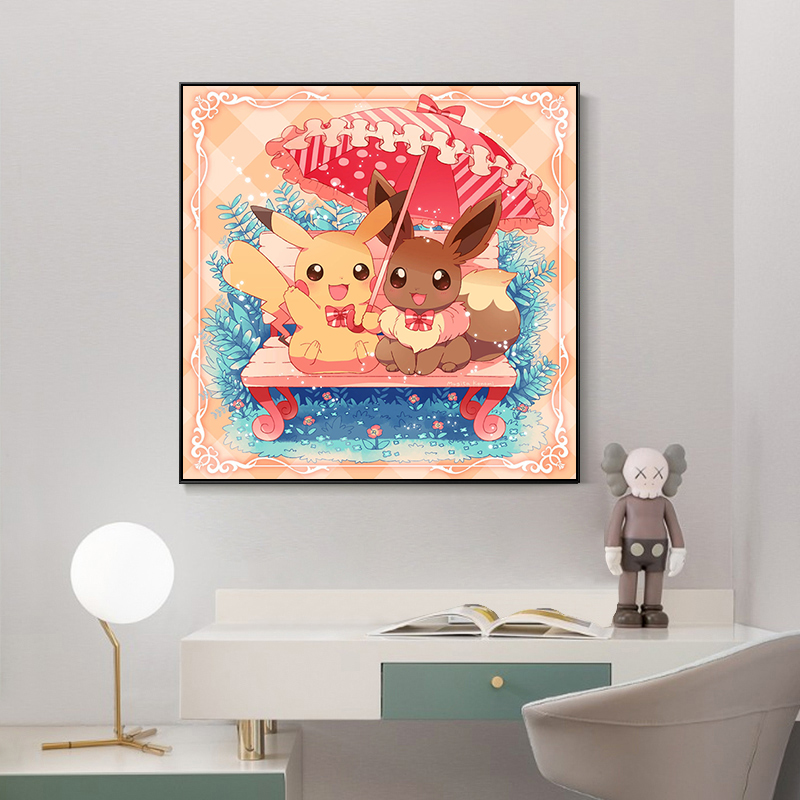 可爱卡通钻石画2025年新款伊布皮卡丘5d贴钻十字绣卧室儿童房满钻