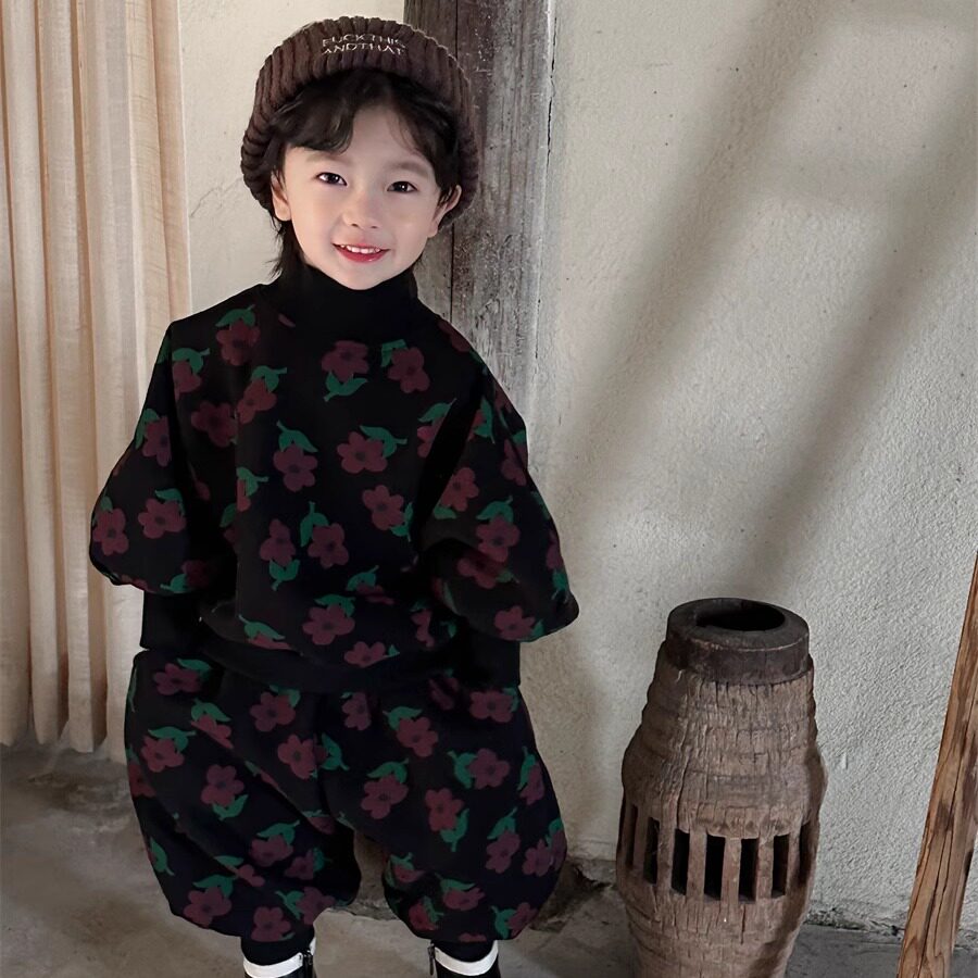 暮晨家新款秋冬2025男童高领加绒卫衣宝宝加厚束脚裤卫裤两件套装