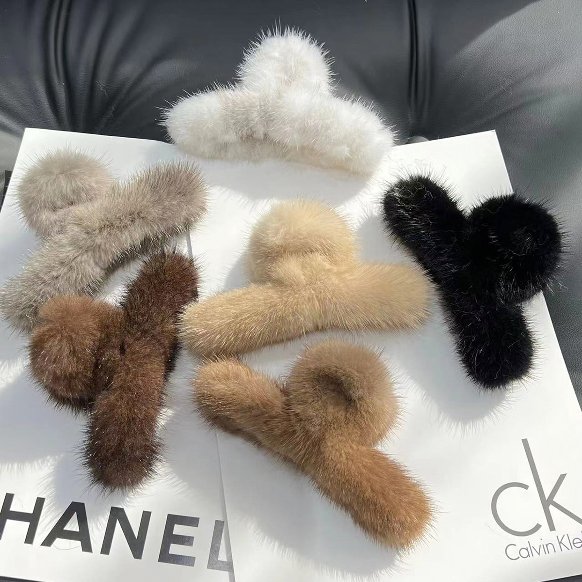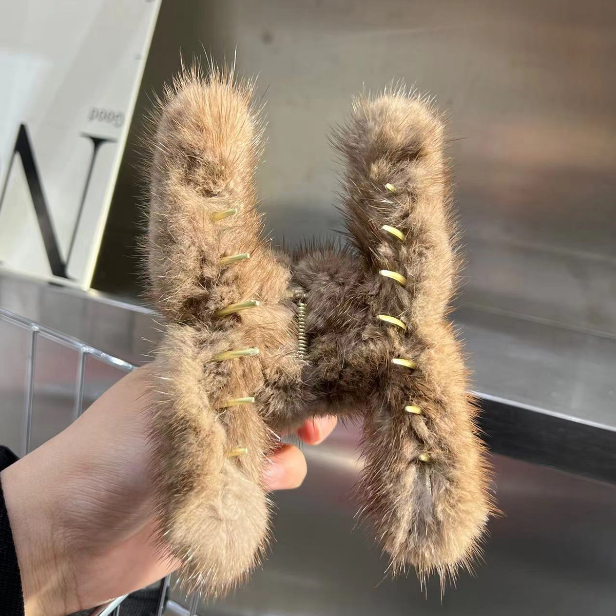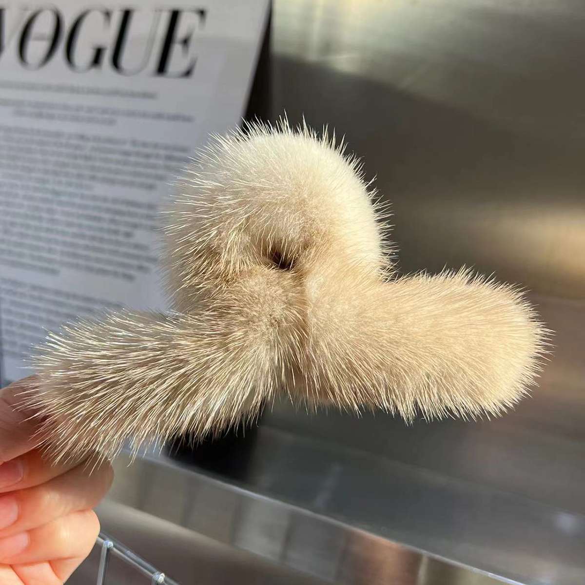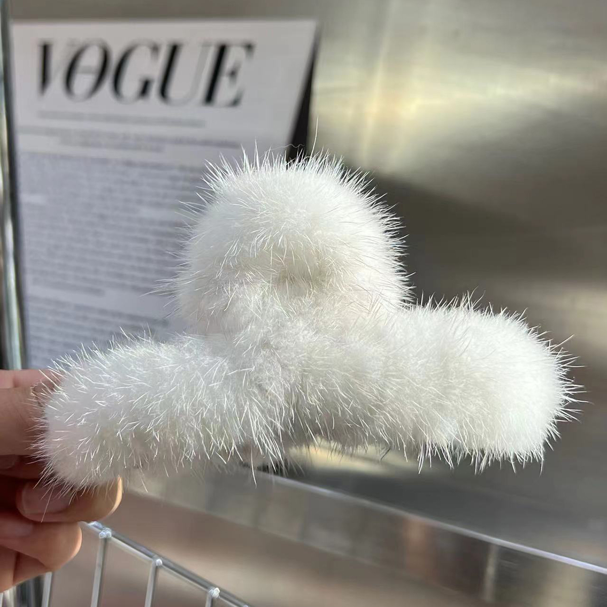 韩国水貂毛发抓可爱毛绒发夹气质网红毛毛抓夹后脑勺夹子鲨鱼夹女