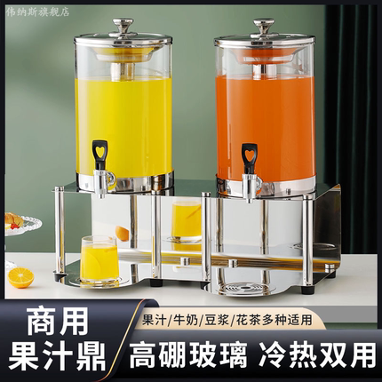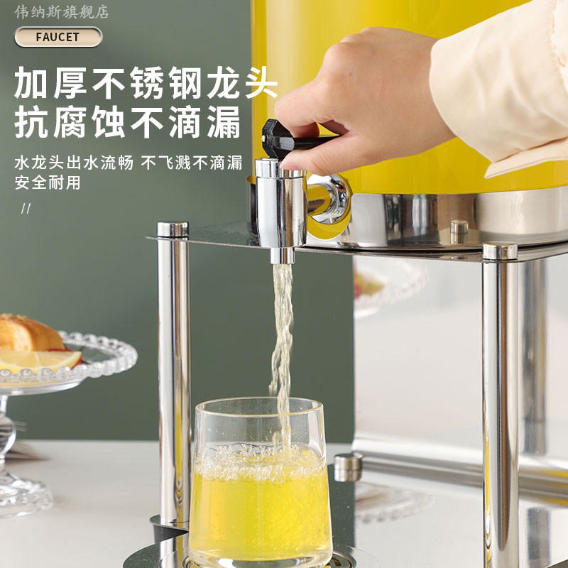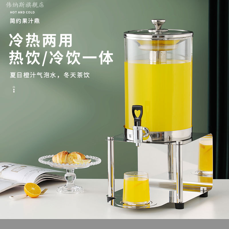 商用自助餐不锈钢加厚果汁鼎单双头制冷饮料机透明冷饮机带水龙头