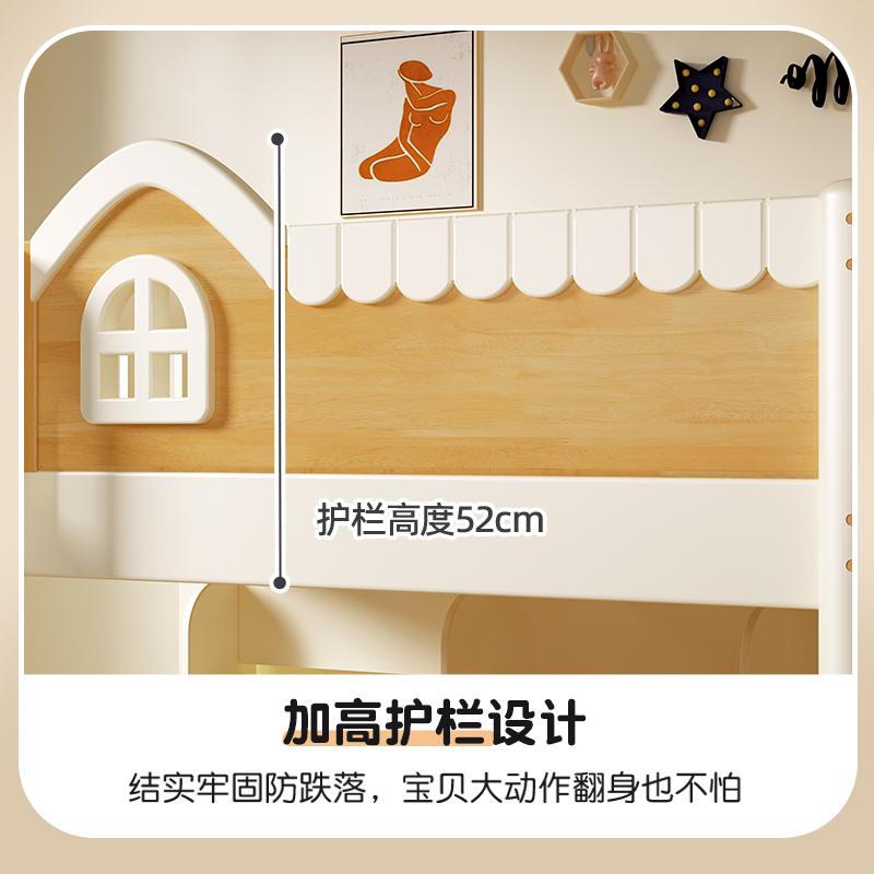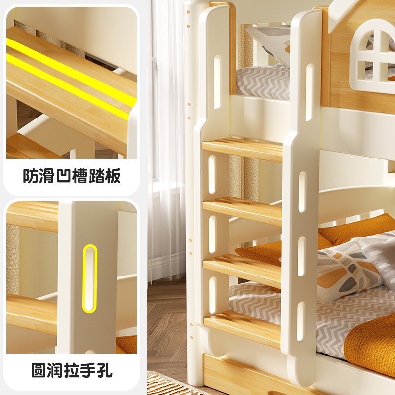 全实木上下床儿童床原木白色同宽双层床小户型高低子母床带滑滑梯