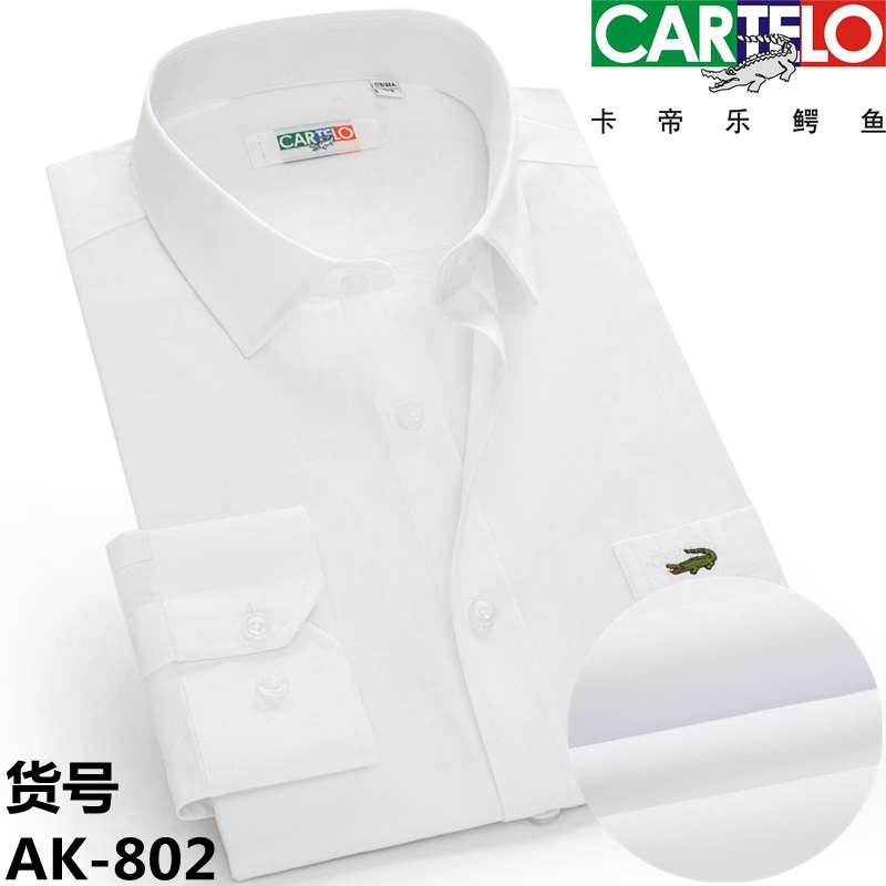 卡帝乐鳄鱼新款男士白色长袖衬衫年青年商务衬衣全棉寸职业正装薄