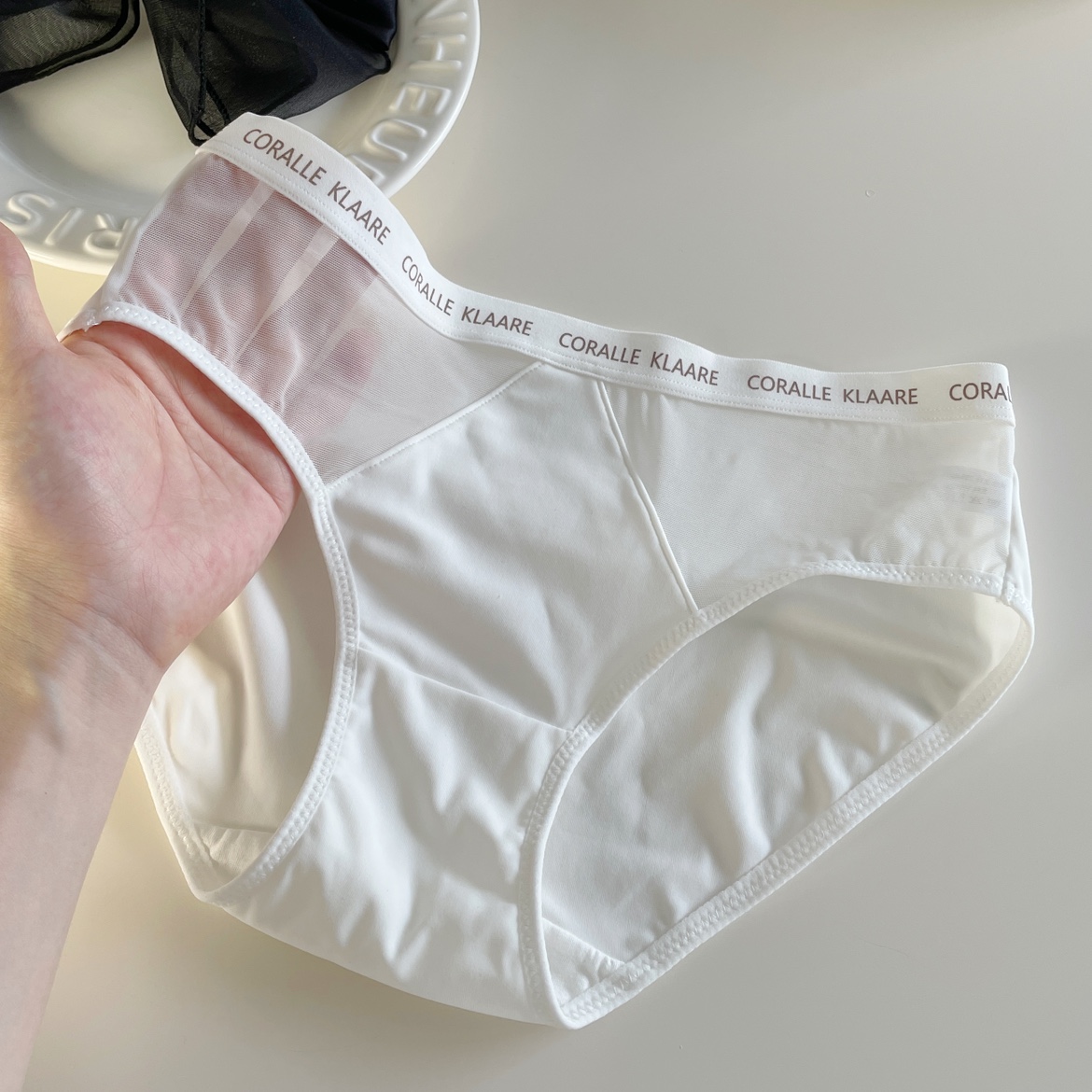 简约运动风两边网纱镂空冰丝字母边欧美女士中低腰内裤裆部纯棉