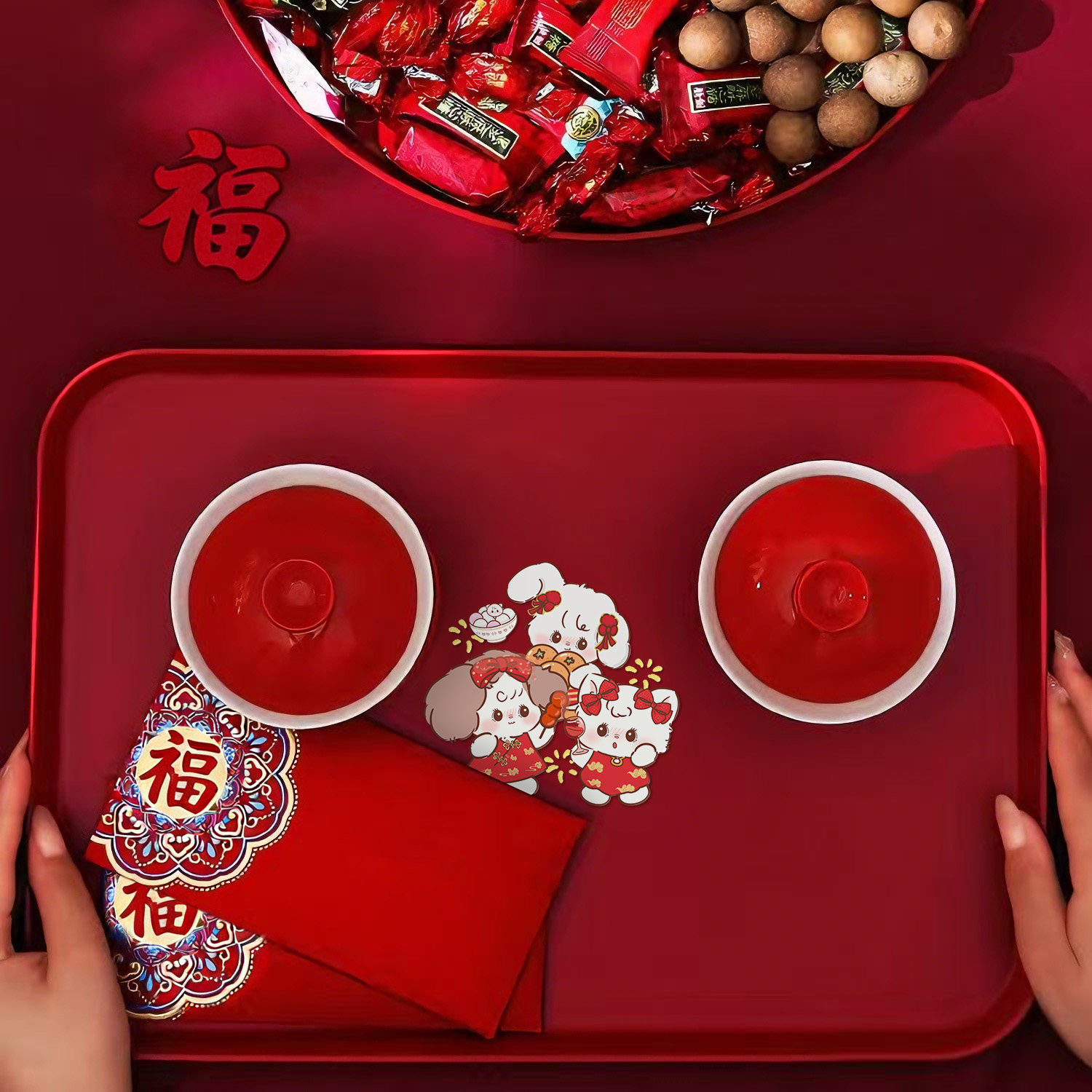 新年春节托盘果盘圆盘塑料红色水果方托盘红盘新年2026马年新款
