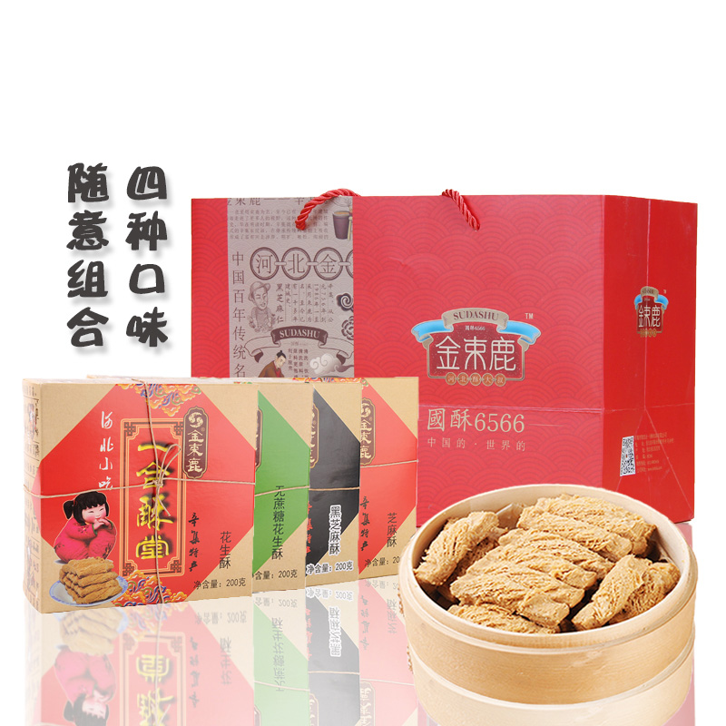 金束鹿花生酥芝麻酥500g*2袋酥糖休闲零食糖果盒装送礼袋辛集特产